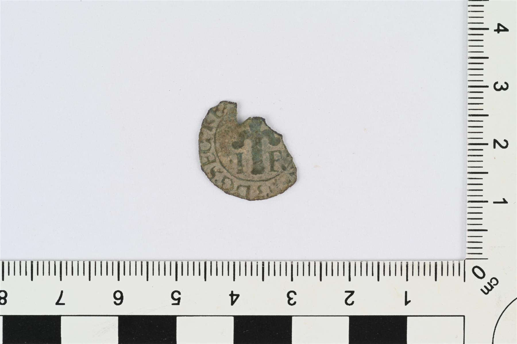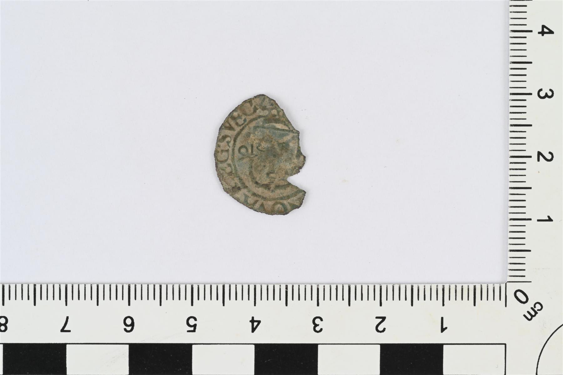 | Juhana III, 1/2 äyriä, 1590-1592. Katkelma, noin puolet rahasta. | |