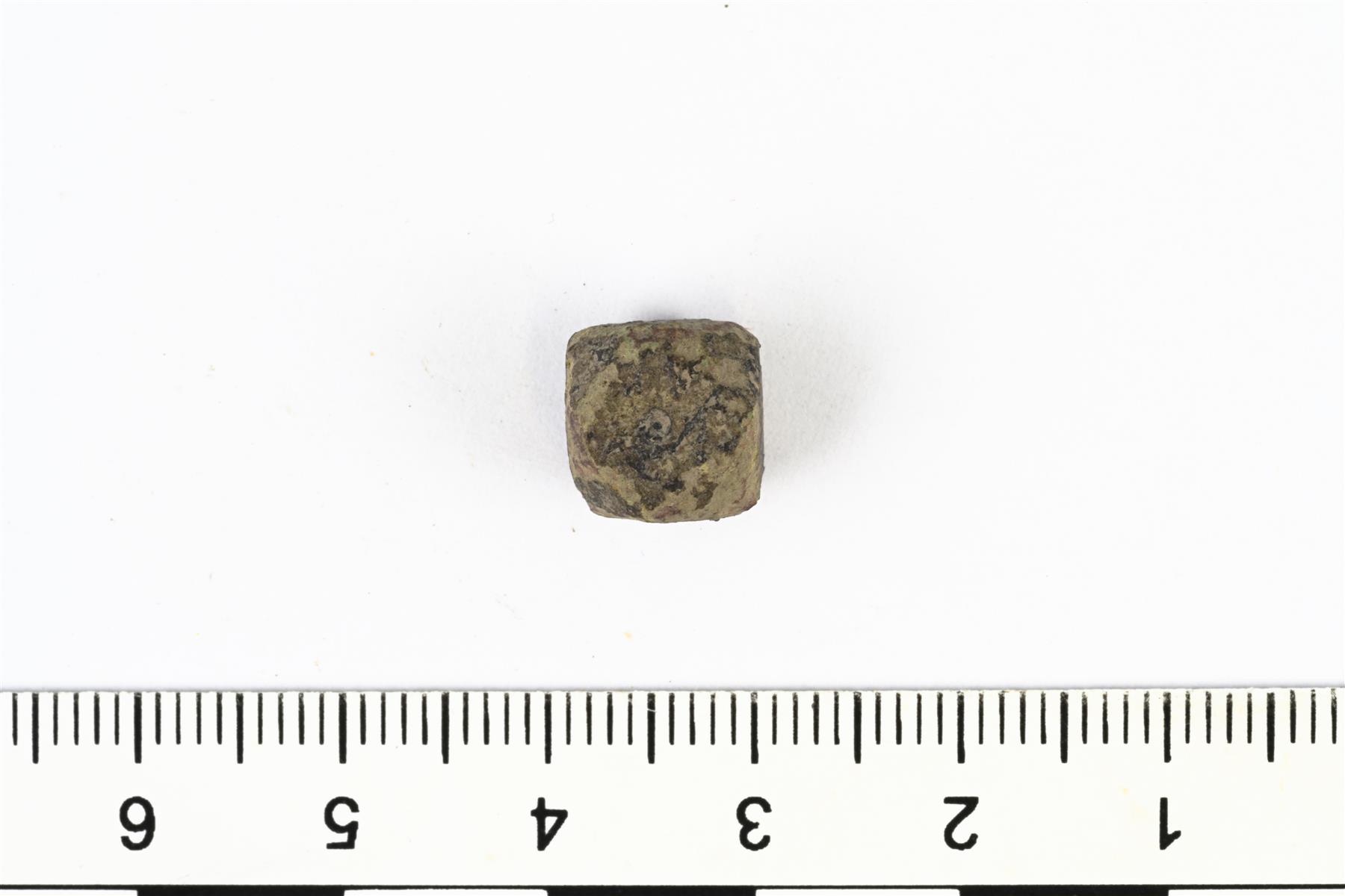 | Neliömäinen punnus. Kulmat on fasetoitu. Koristeluna häränsilmäleimoja. | |