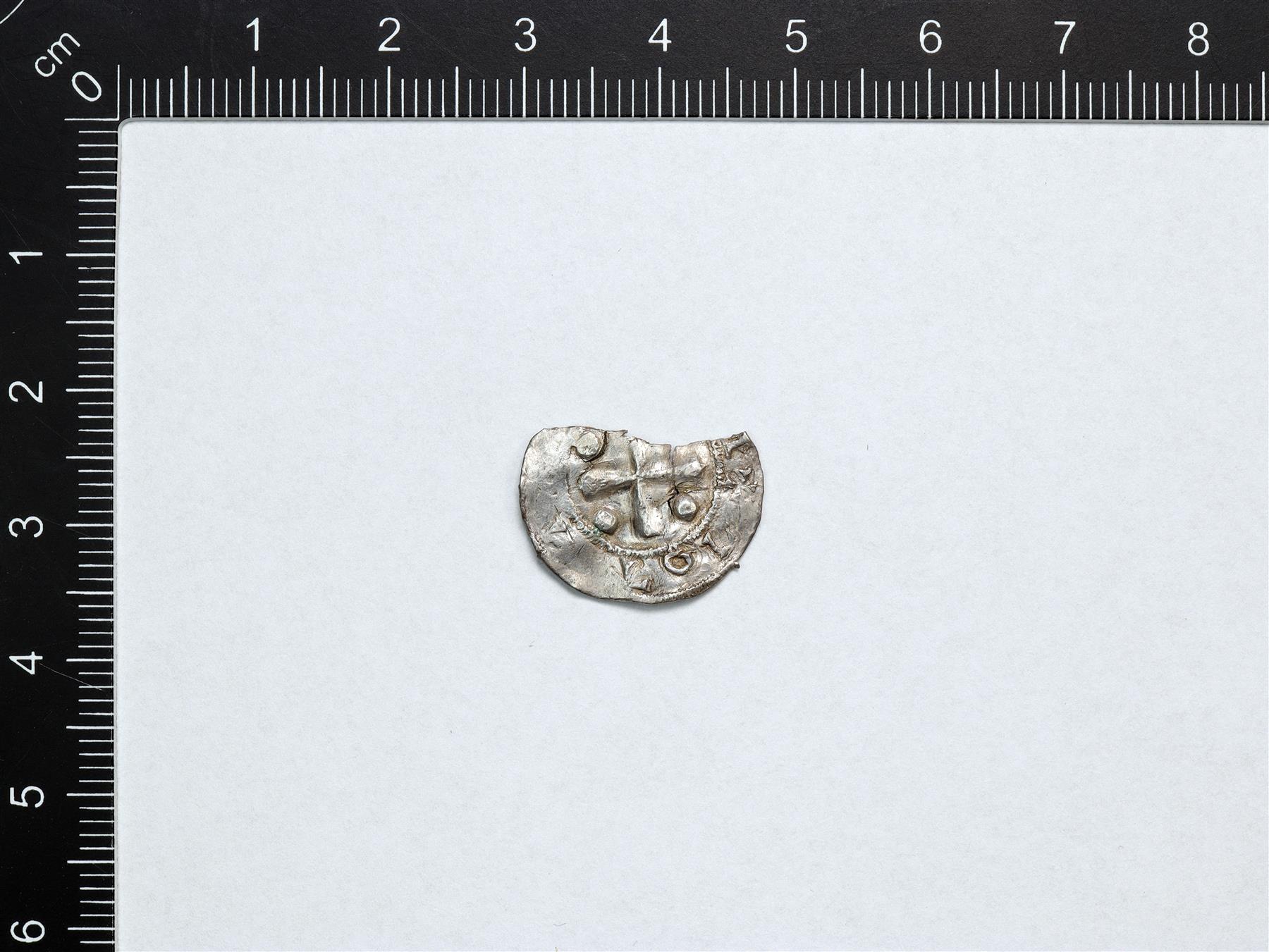 | Raha, jonka reunasta on murtunut pala. Otto II/III, penninki, Mainz. | |