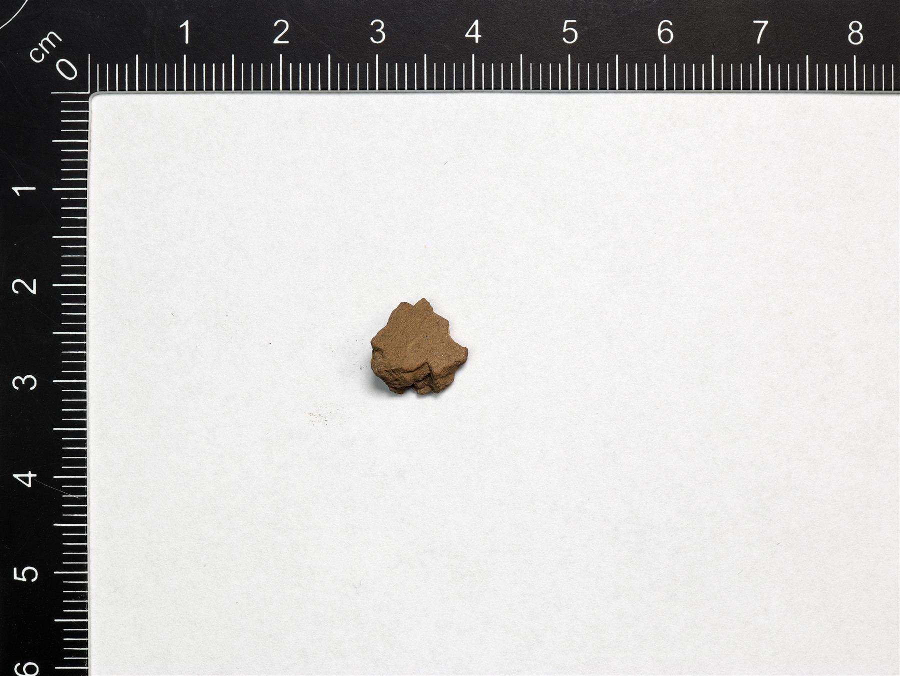 | Lohjennut pala. Harmaanruskea savimassa, jossa on karkea hiekkasekoite. | |