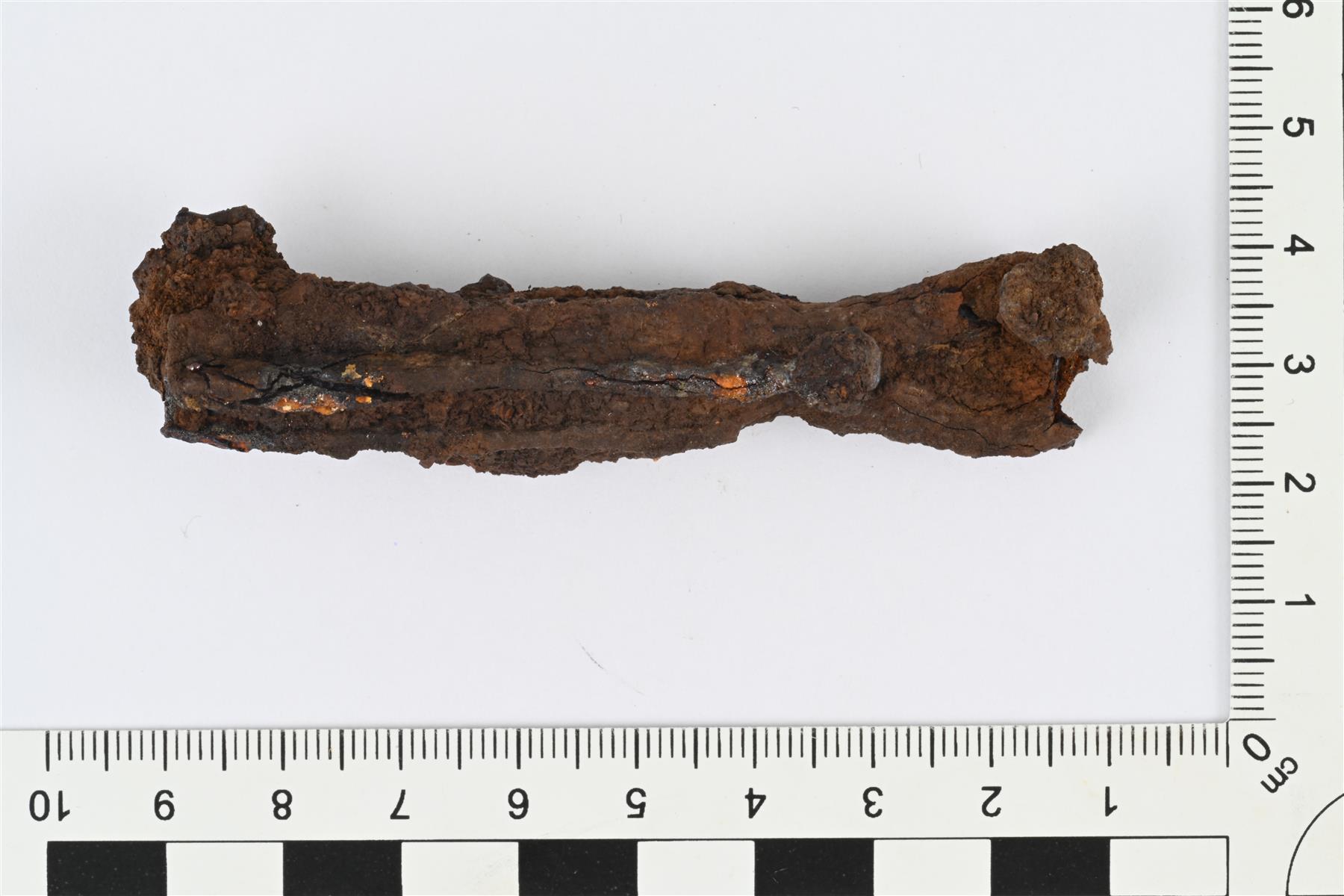 | Palkkimainen, pitkittäisistä levyistä muodostuva putkilukon avain. Toisessa päässä katkelmallinen soikea lenkki. | |