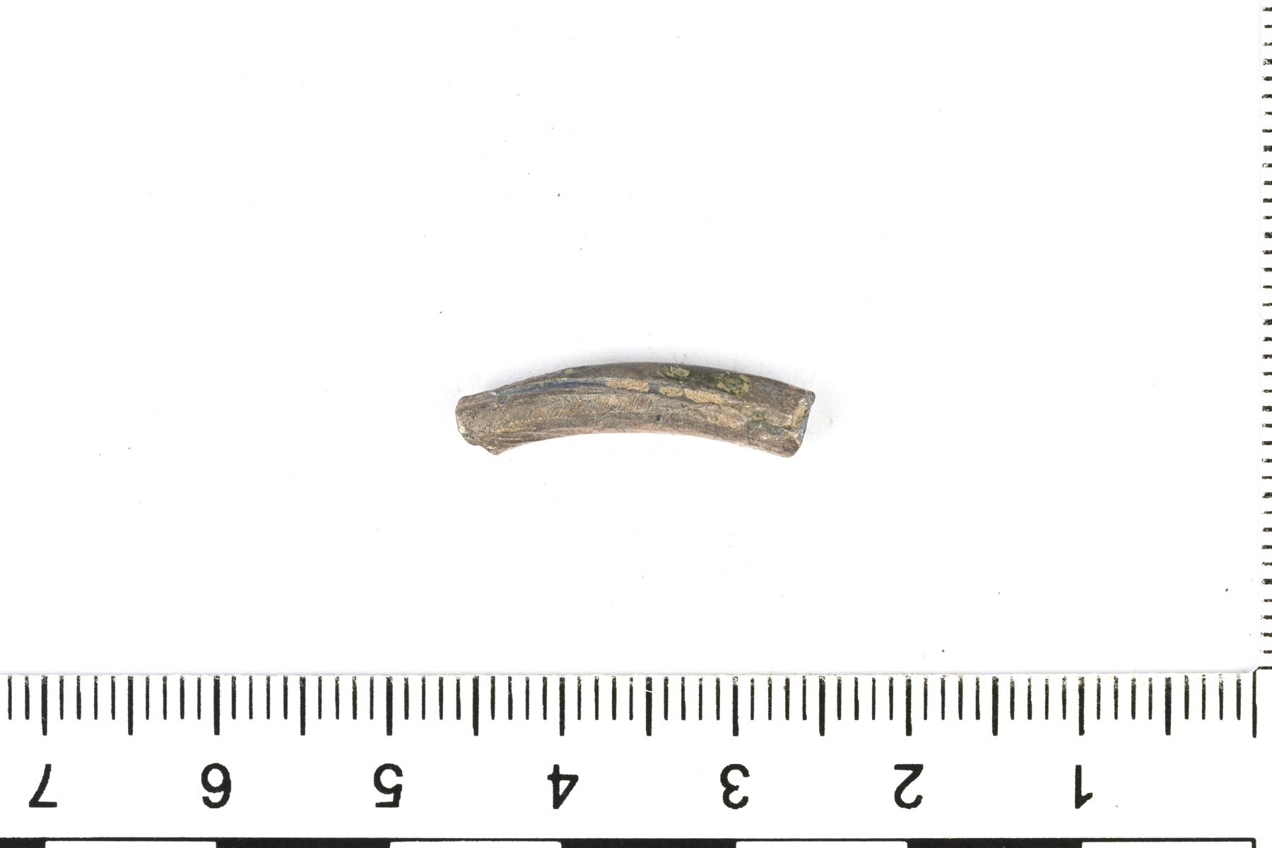 | Poikkileikkaukseltaan pyöreän maksuhopean pala. Kummassakin päässä on katkaisujäljet. | |