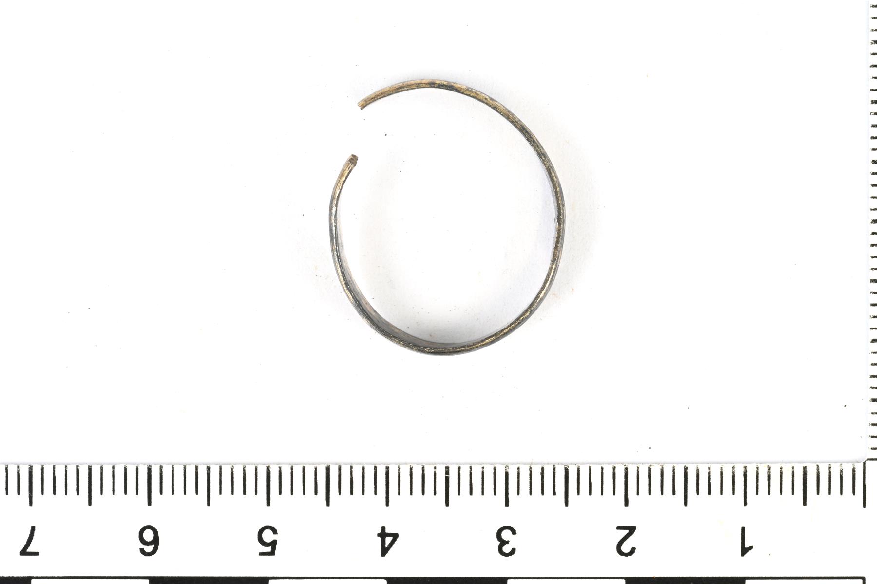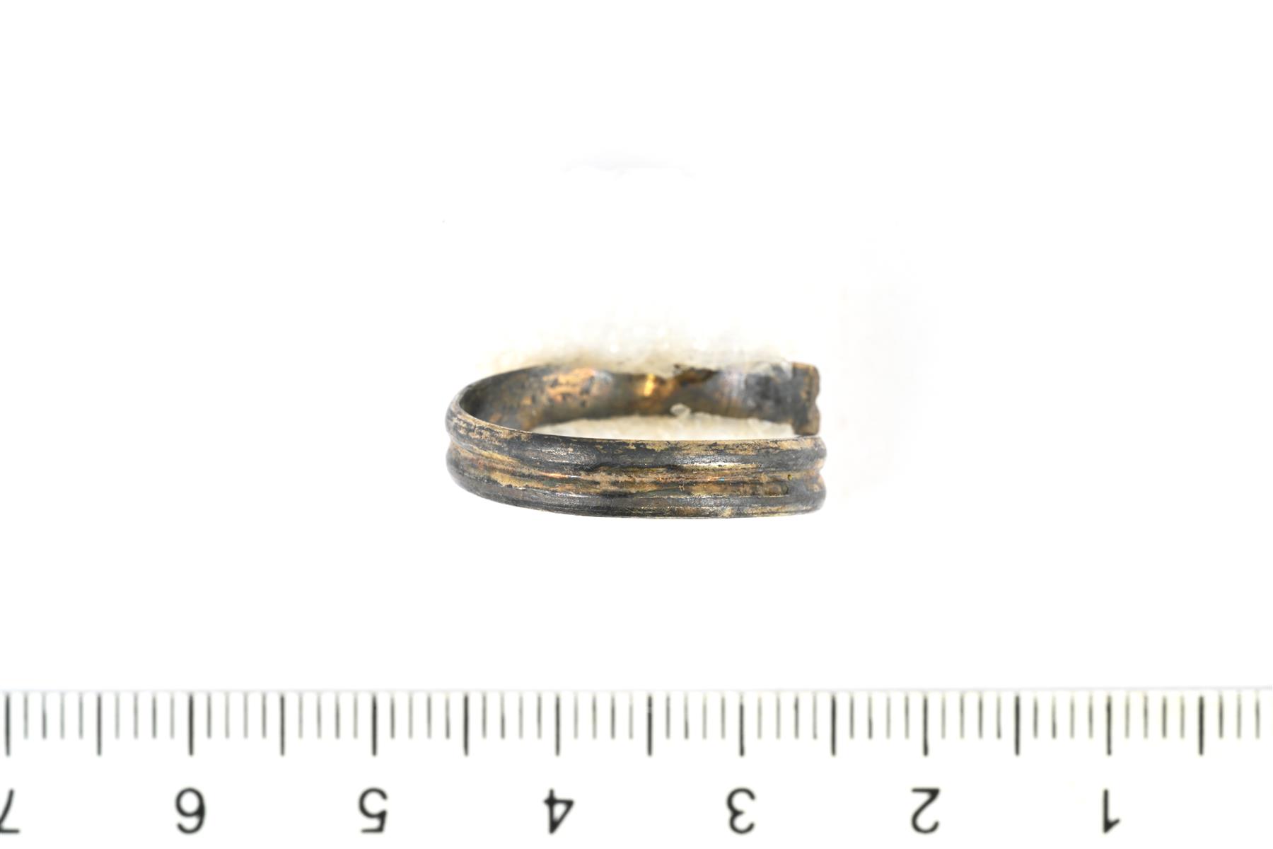 | Tasaleveä hopeasormus. Keskellä kulkee uurre. Pinnassa on kultausta. | |
