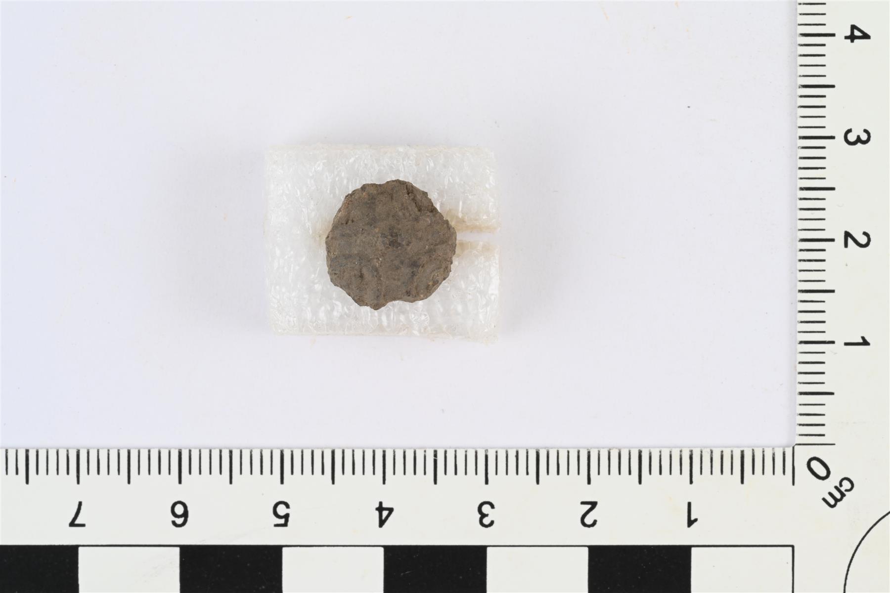 | Pyöreä vyön tai hihnan hela. Etupuolella reliefinä ristikuvio. Taustapuolella kiinnitystappi. | |