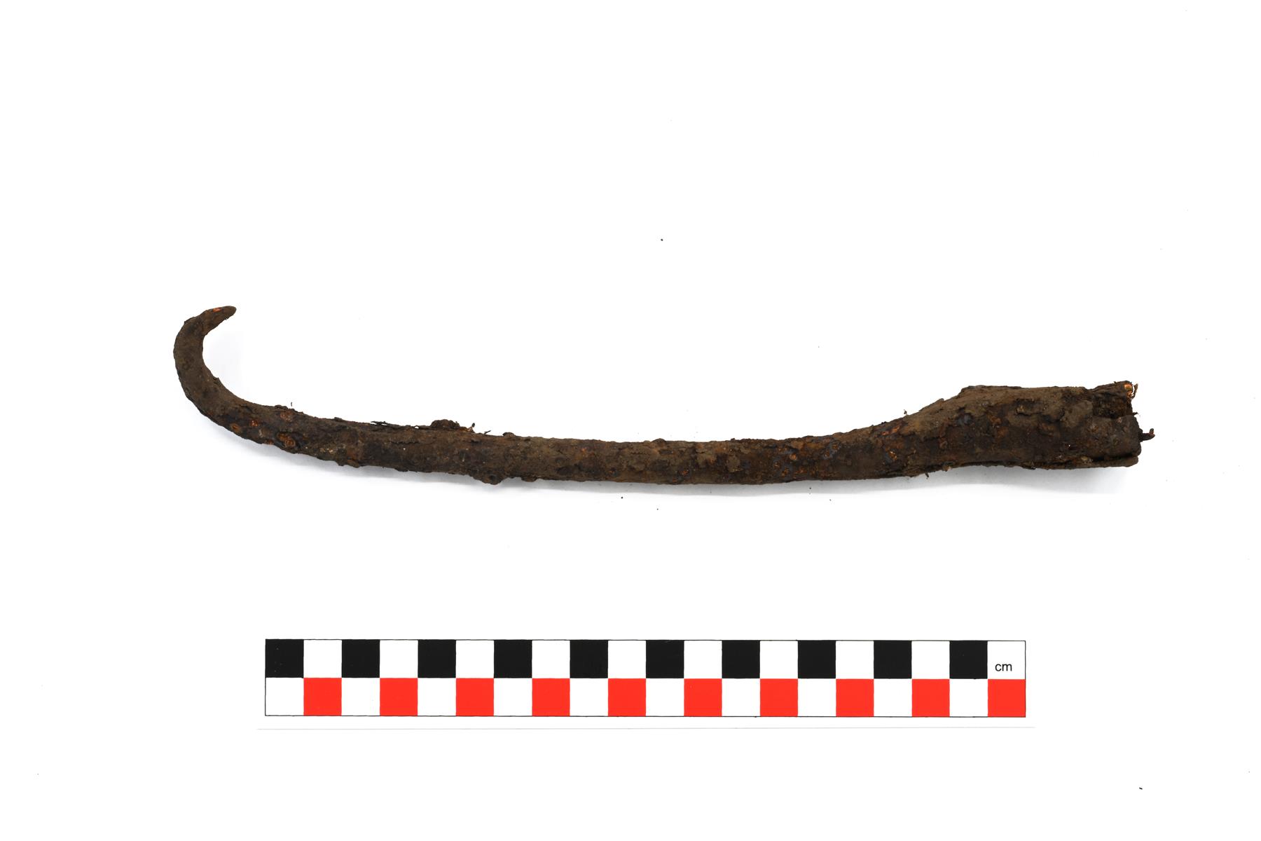 | Pitkäkaulainen putkikeihäänkärki. Terä puuttuu. Kaula on väännetty. Putki on karkeatekoinen ja sivusauma erottuu selkeänä. | |