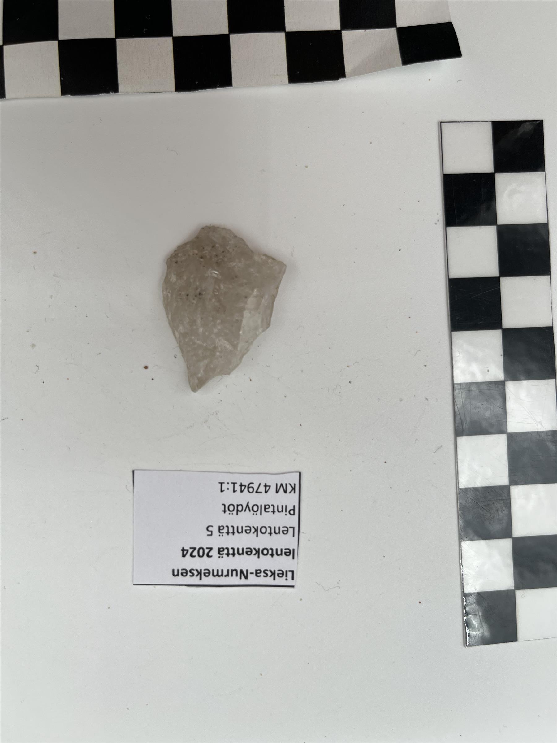 | Lieksa-Nurmeksen kiitoradan pohjoispuolelta pintapoiminnassa löydetty kvartsi-kaavin/-iskos. | |