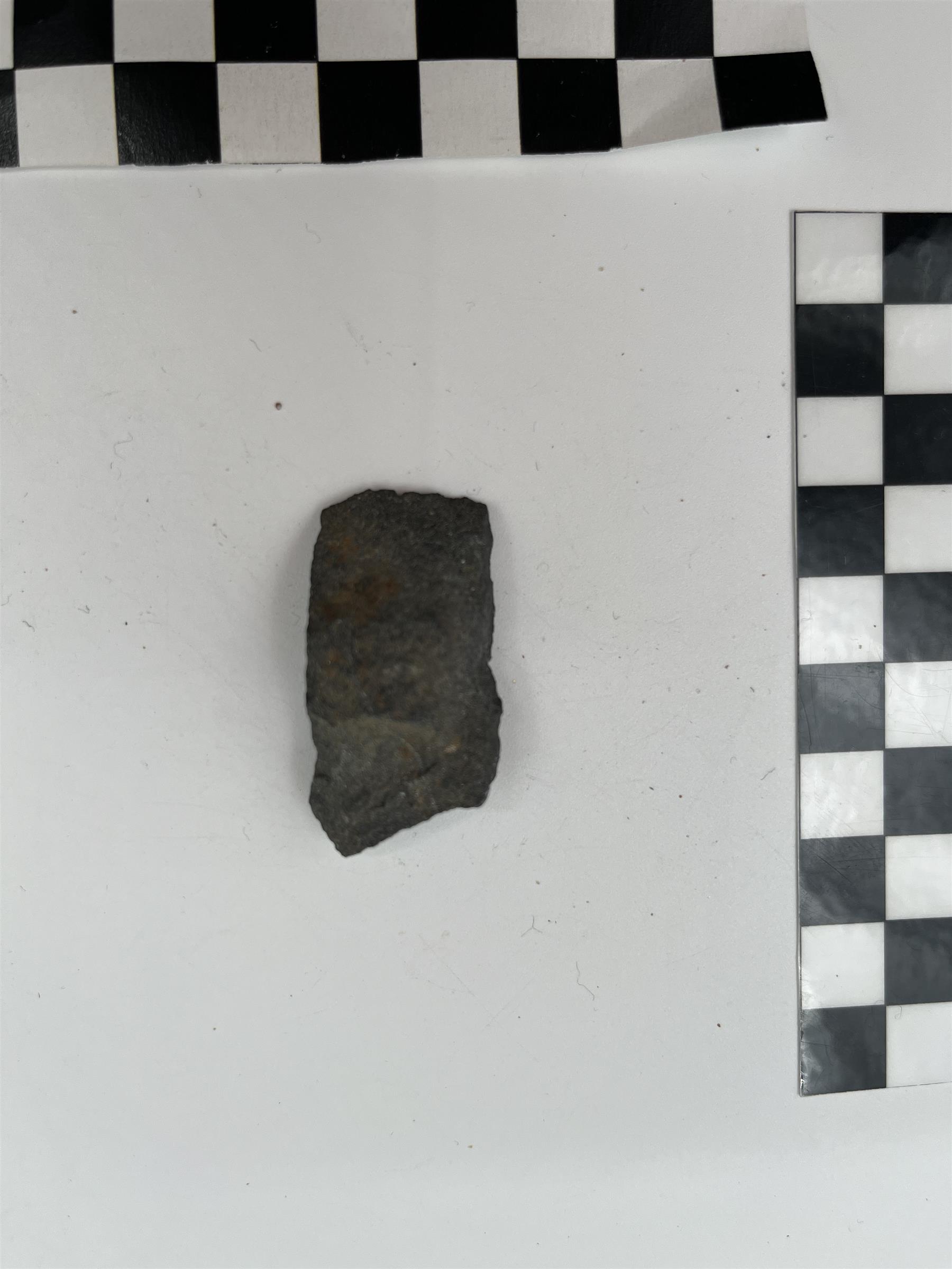 | Lieksa-Nurmeksen kiitoradan pohjoispuolelta pintapoiminnassa löydetty kivilajiesineen katkelma/teelmä. | |
