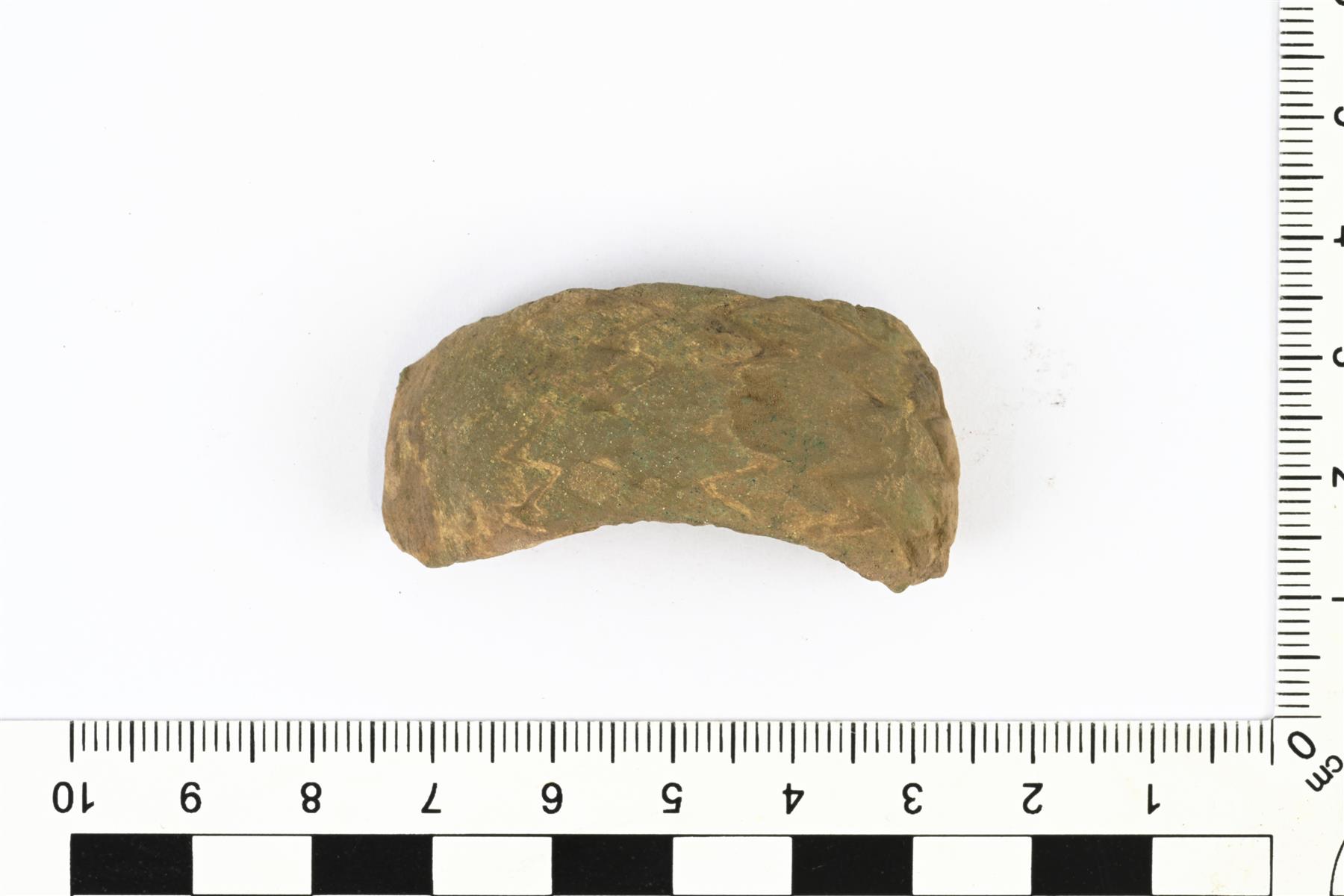 | Massiivisen rannerenkaan katkelma. Koristeina vinoneliökuvioita. Vrt. Kivikoski Abb. 735. | |