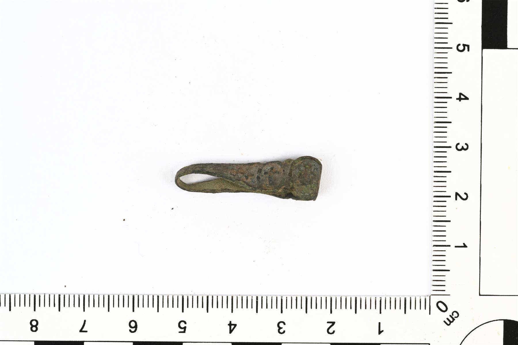 | Litistynyt umpisormus. Etupuolella on koristeena risti, sydän ja ankkurikuvio. | |