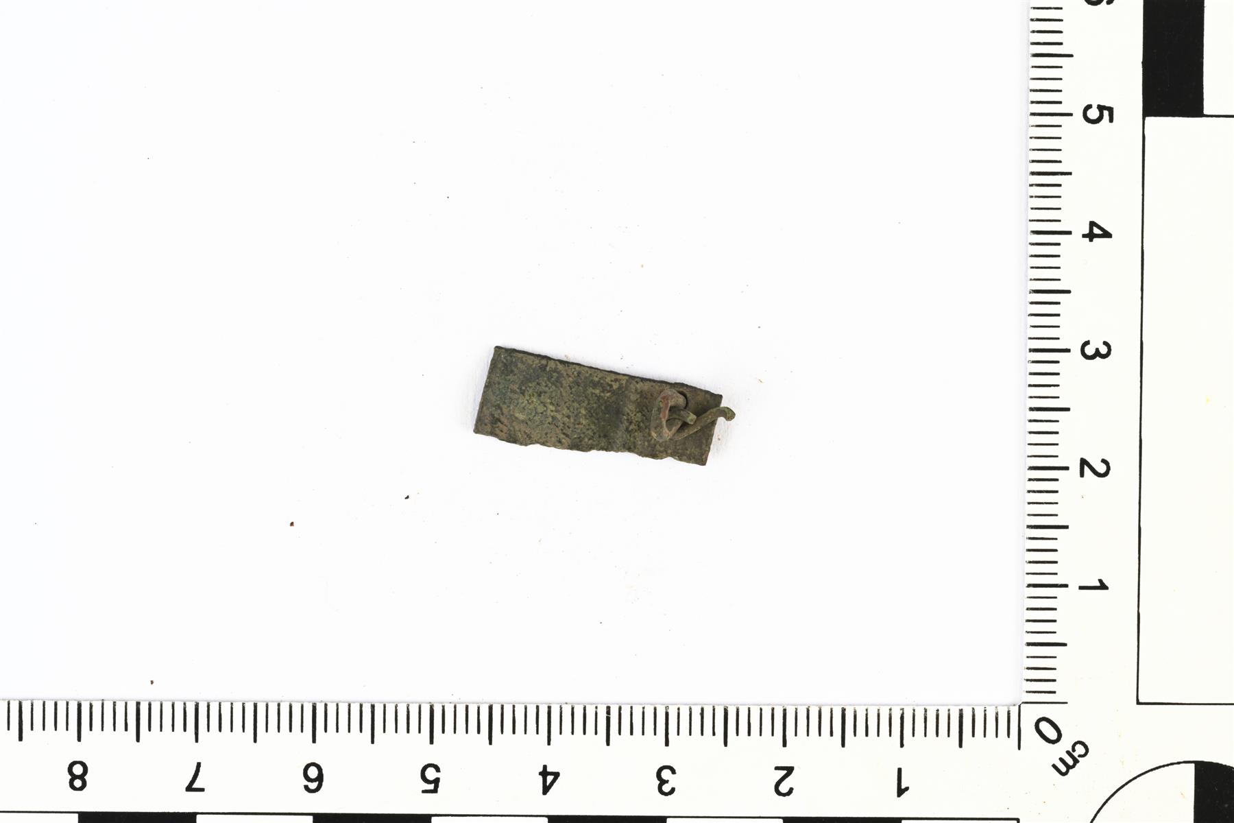 | Kupariseoshelan katkelma. Reunassa on ketjun kiinnityslenkki. | |
