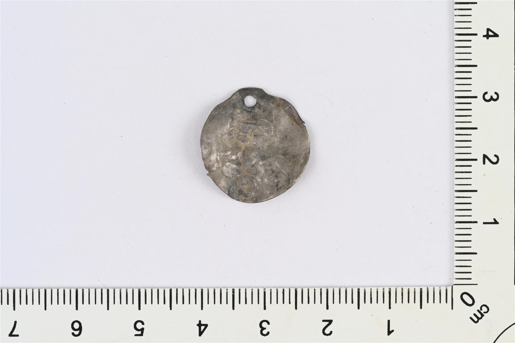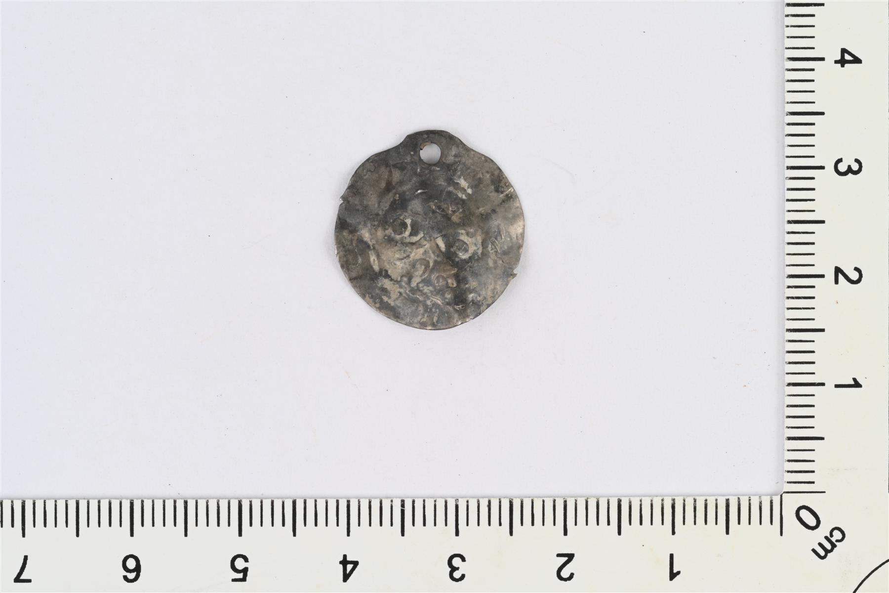 | Otto III, penninki, Köln 983–1002 (tai kölniläisen penningin jäljitelmä). Rei’itetty. | |