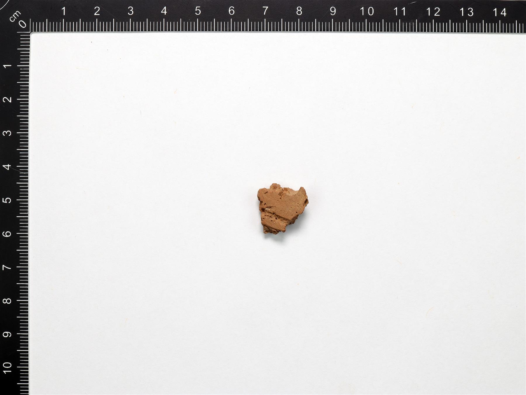 | Kampaleima- ja kuoppakoristeltu pala, joka on lohjennut. Savimassa on harmaanruskea ja sekoitteena on käytetty orgaanista ainetta ja hiekkaa. | |
