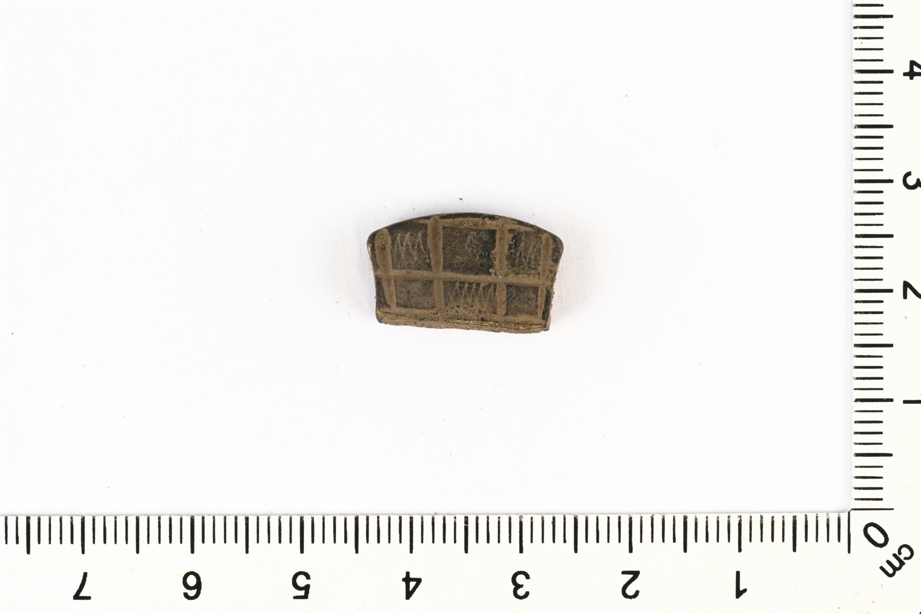 | Ristikkokoristeinen pöytäveitsen päätehela. | |