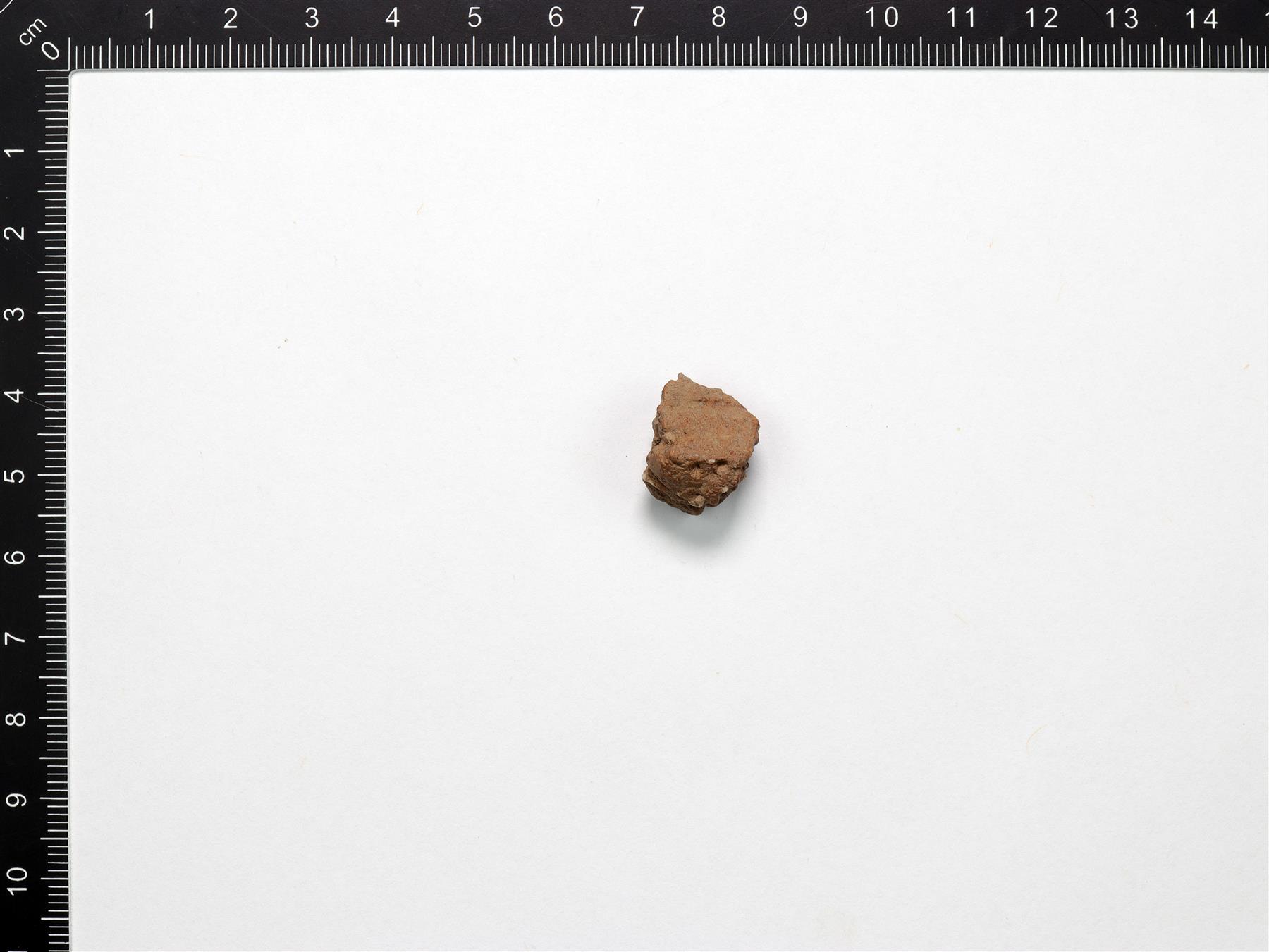 | Lohjennut reunapala, jossa on kampaleimakoristelua reunan päällä. Savimassa on harmaanruskea ja hiekkasekoitteinen. | |