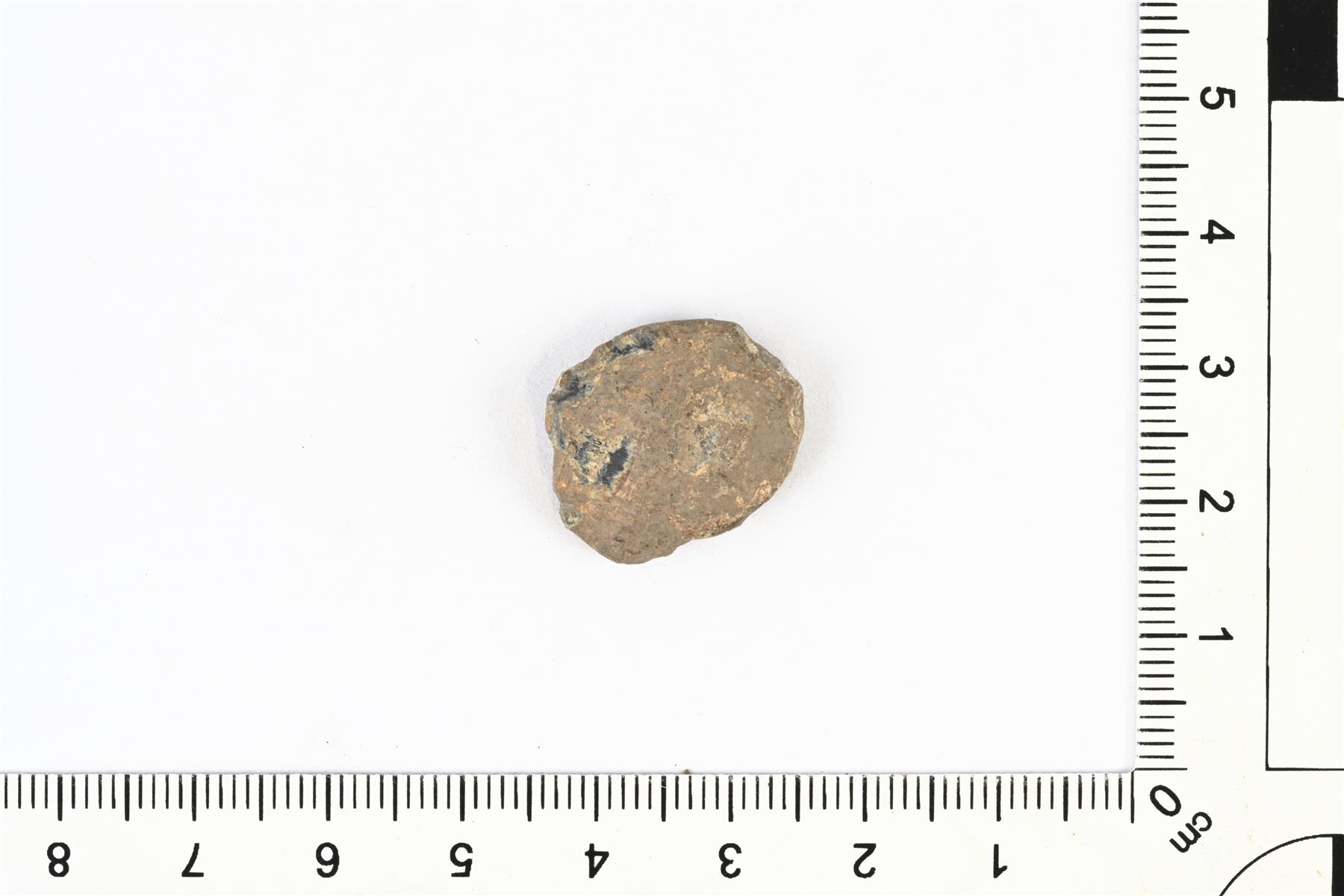 | Tunnistamattomaksi kulunut pyöreä plombi. | |
