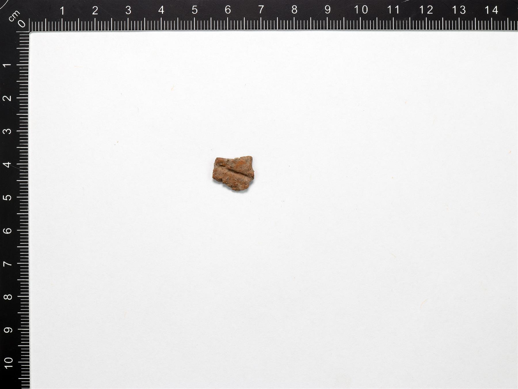 | Lohjennut pala, jossa on kampaleimakoristelua. Harmaanruskea savimassa. Sekoitteena hiekkaa. | |