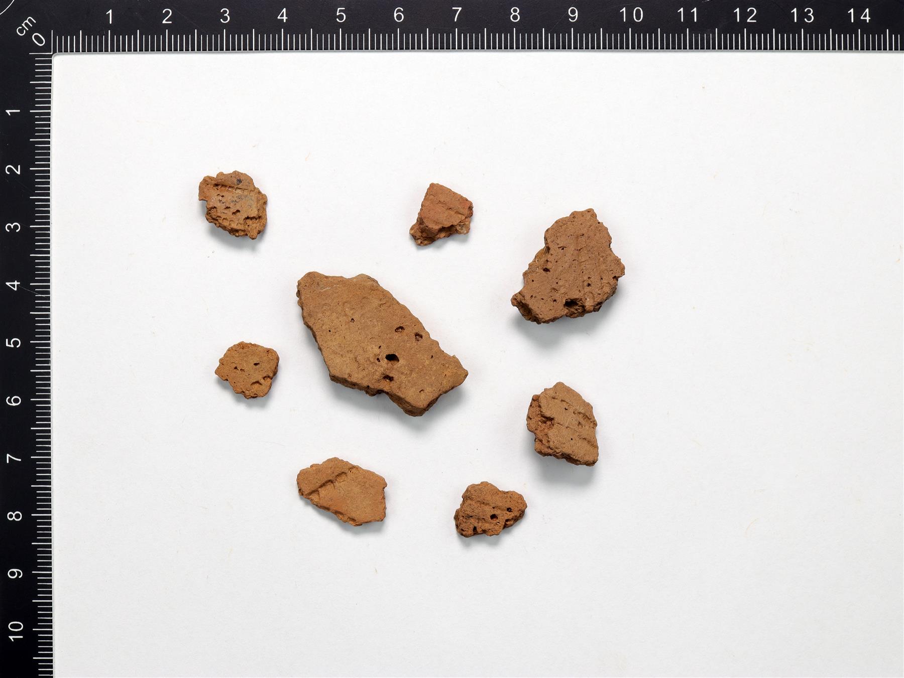 | Lohjenneita paloja, joissa on kampaleimakoristelua. Harmaanruskea savimassa. Sekoitteena orgaanista ainetta ja hiekkaa. | |