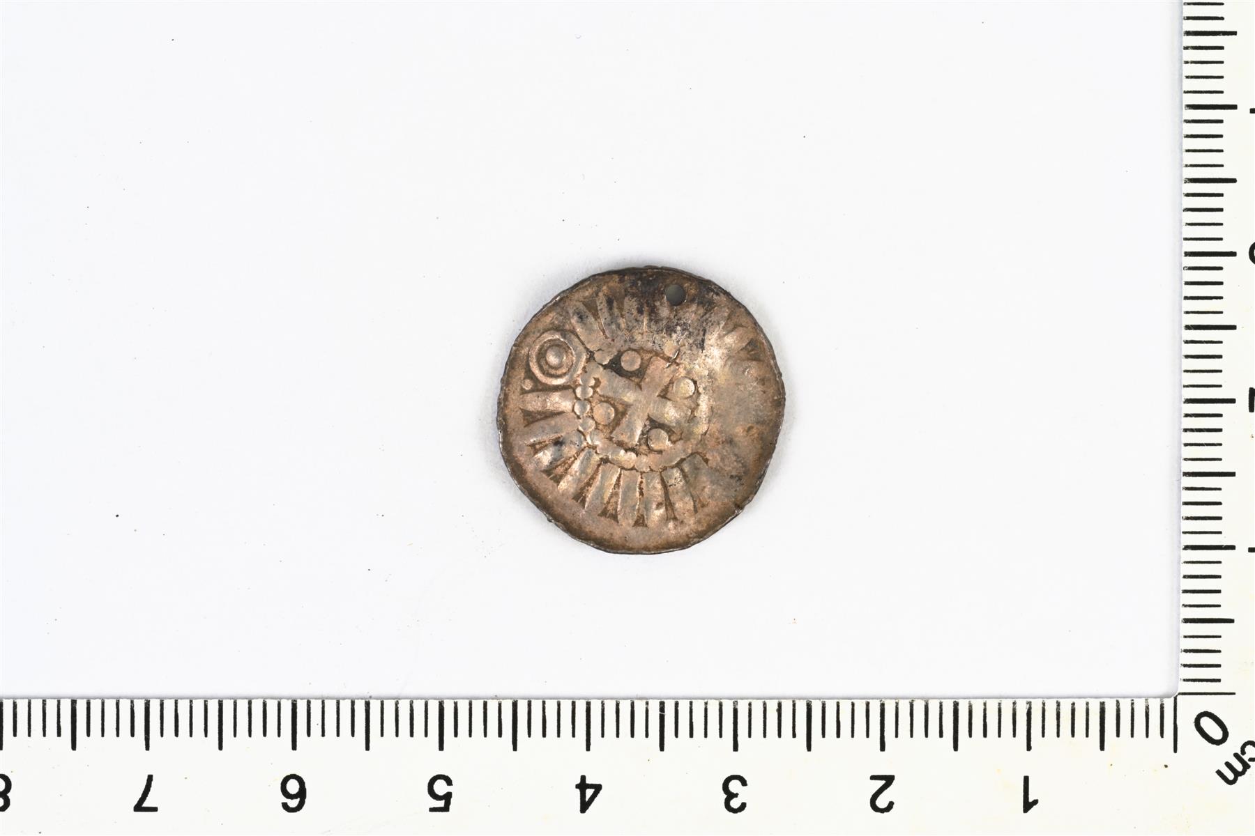 | Anonyymi penninki (Sachsenpfennig), Magdeburg n. 950–1000. Reunassa on reikä. | |