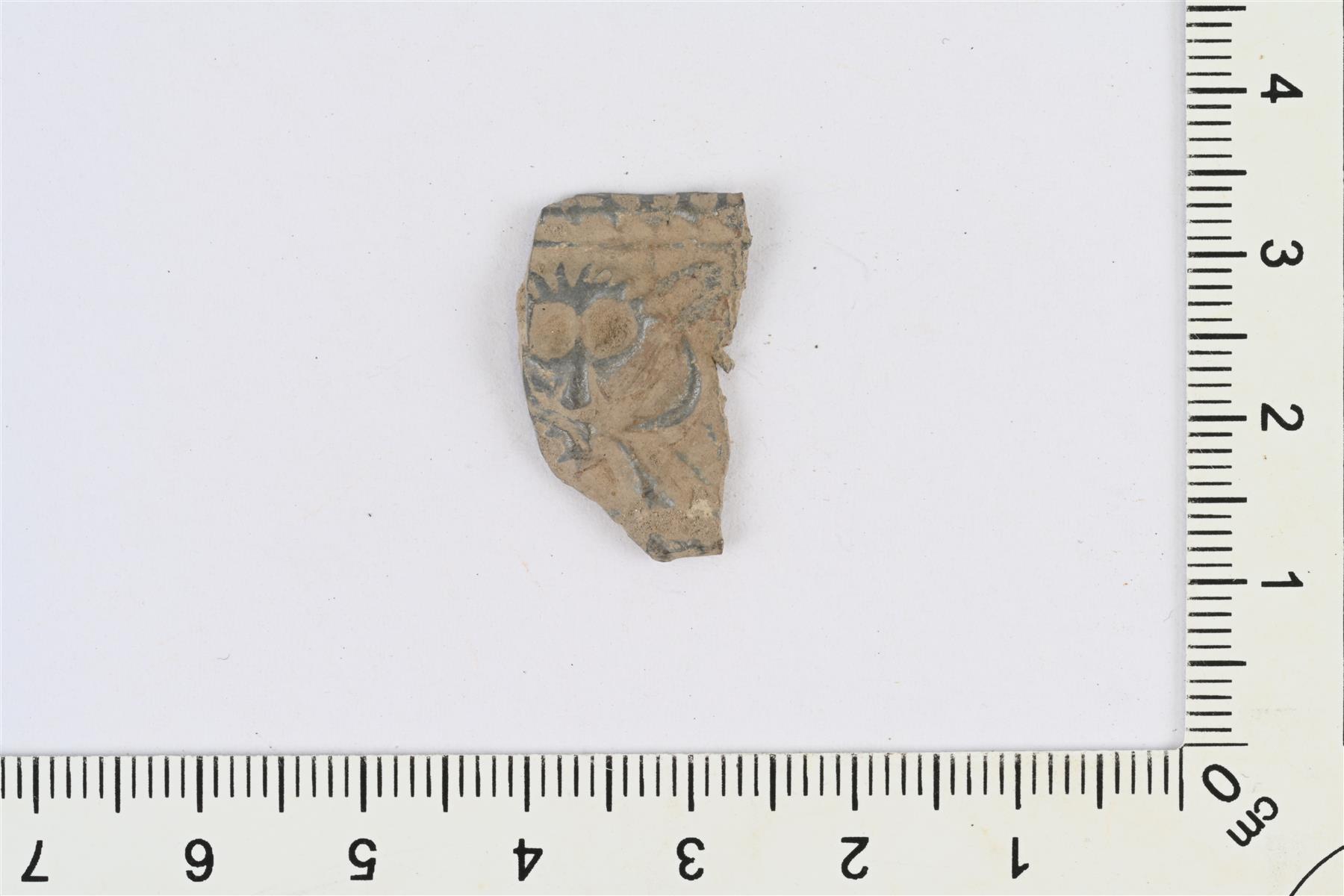 | Vyölaatan katkelma. Etupuolella reliefikoristeluna ihmishahmoja. Taustapuolella kiinnityslenkki. Samasta esineestä kuin KM47907:2. Kuva-aihe sommittelultaan ja osittain yksityiskohdiltaan hyvin samanlainen kuin Sastamalasta löydetyssä vyölaatassa (Immonen 2010, s. 247, Fig. 80; Part II Catalogue, s. 104, No. 4). Vastineen perusteella ajoittuu 1500- ja 1600-lukujen taitteeseen. | |