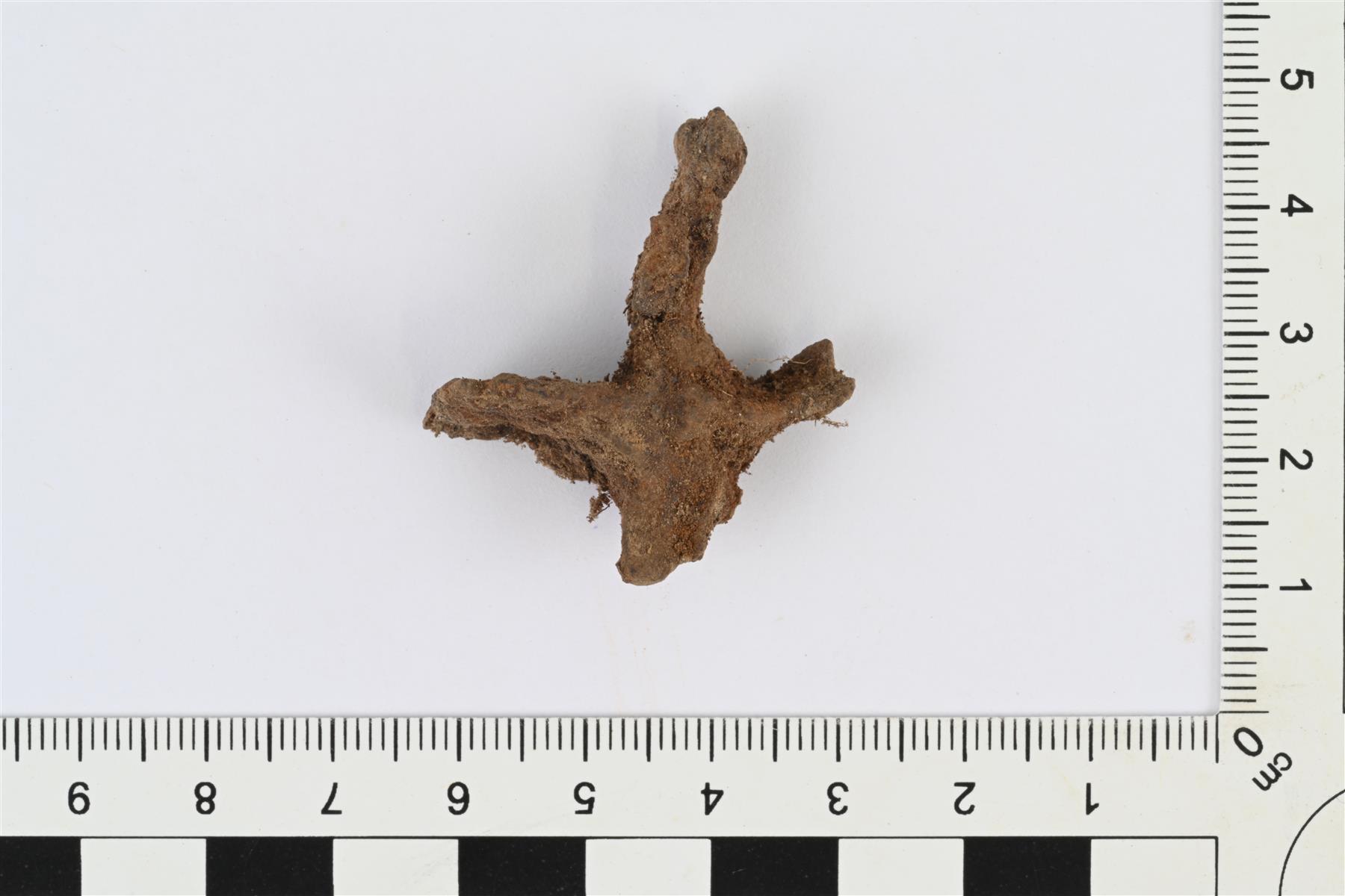 | Yksipiikkinen hevosen viskari. Teräväksi suippeneva naulamainen varsi, jonka toisessa päässä pieni levy ja sen toisella pinnalla ulkoneva jäänasta. Levyn reunat osittain murtuneet. | |