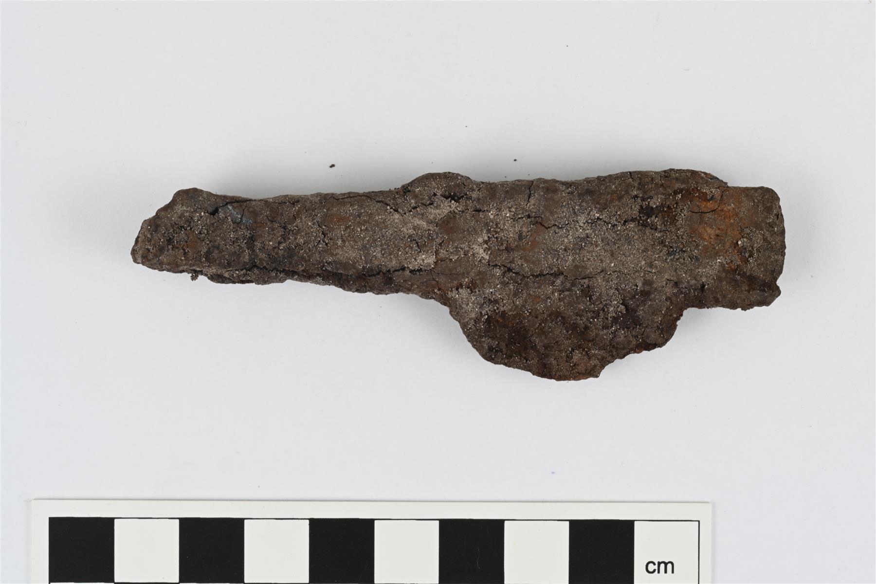 | Poikkiteräinen ruodollinen nuolenkärki. Voimakkaasti korrodoitunut. Ruodon pää katkennut. | |