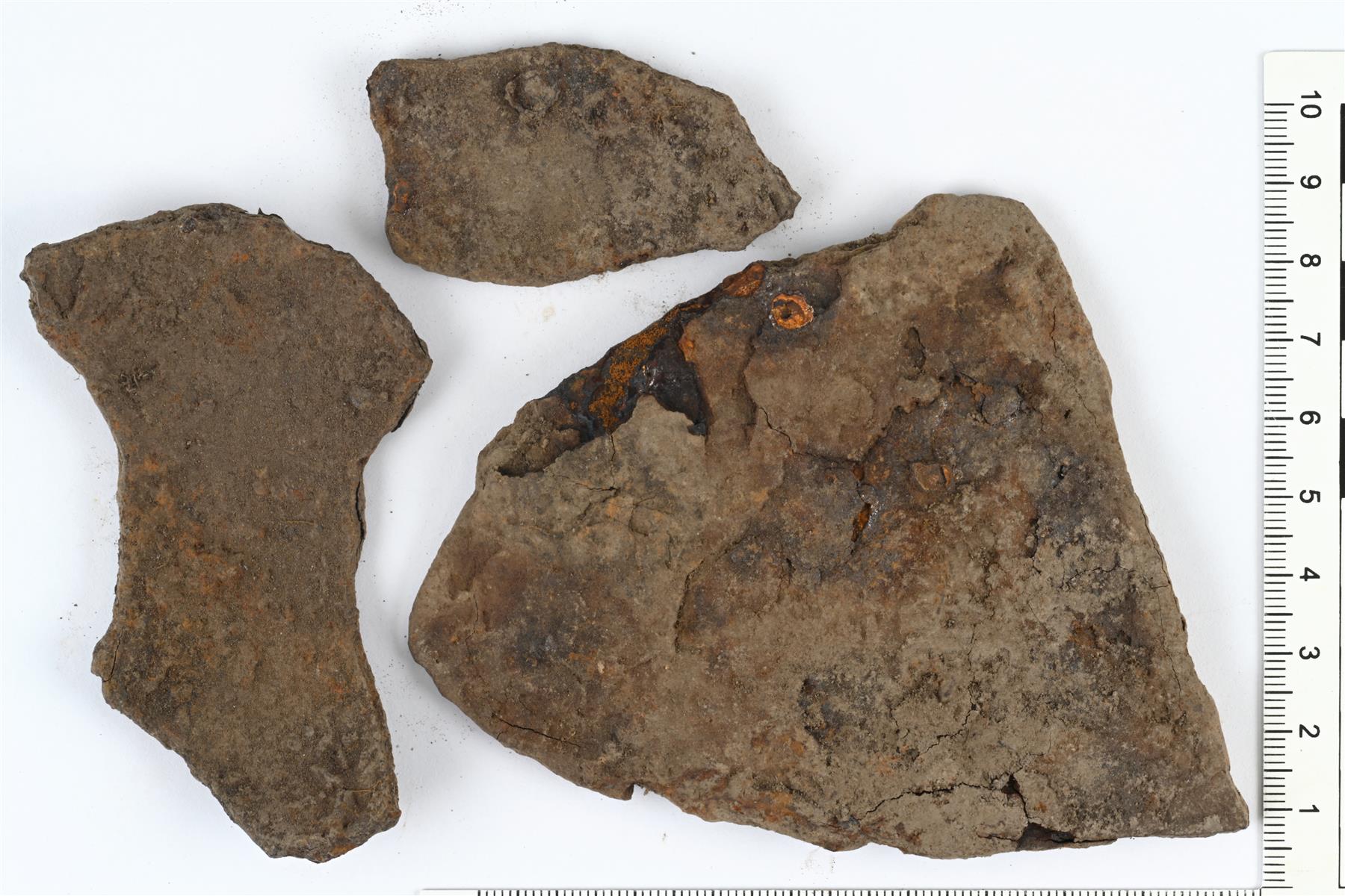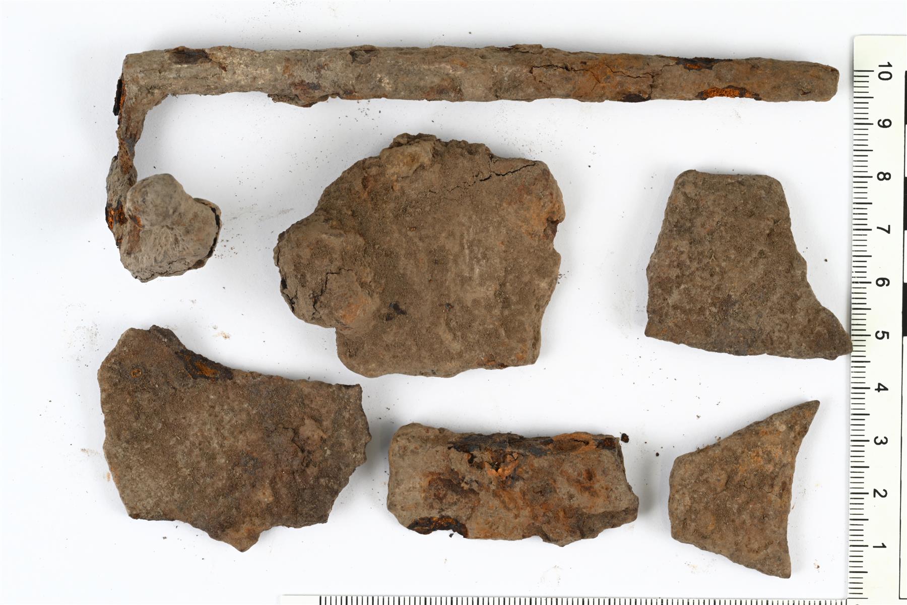 | Valurautapadan kylkikatkelmia ja kahvan osa. | |
