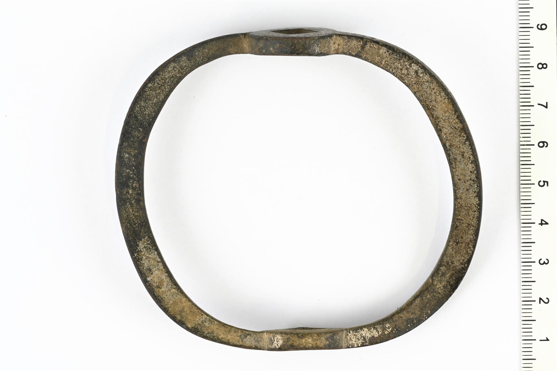 | Hopeoitu aisakellon kehä. Navoilla on kiinnitystä varten neliömäiset reiät. | |