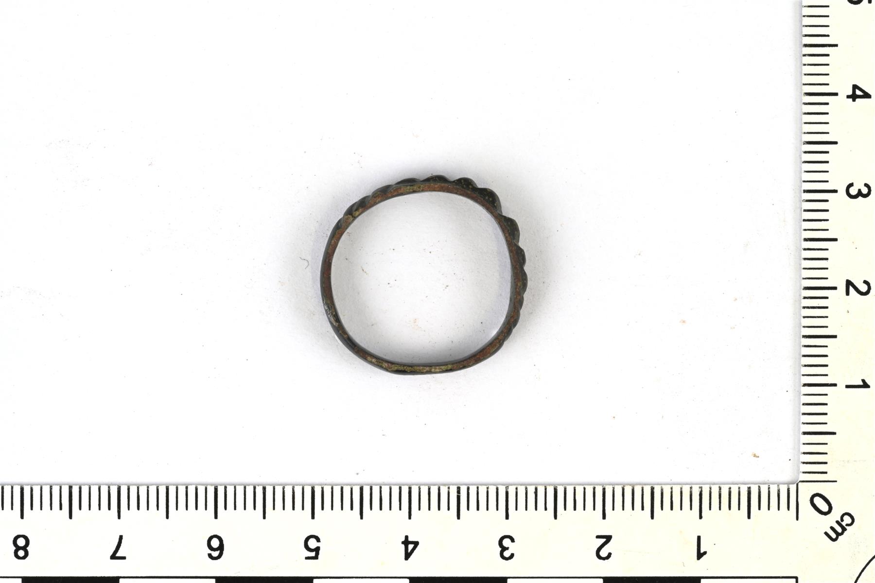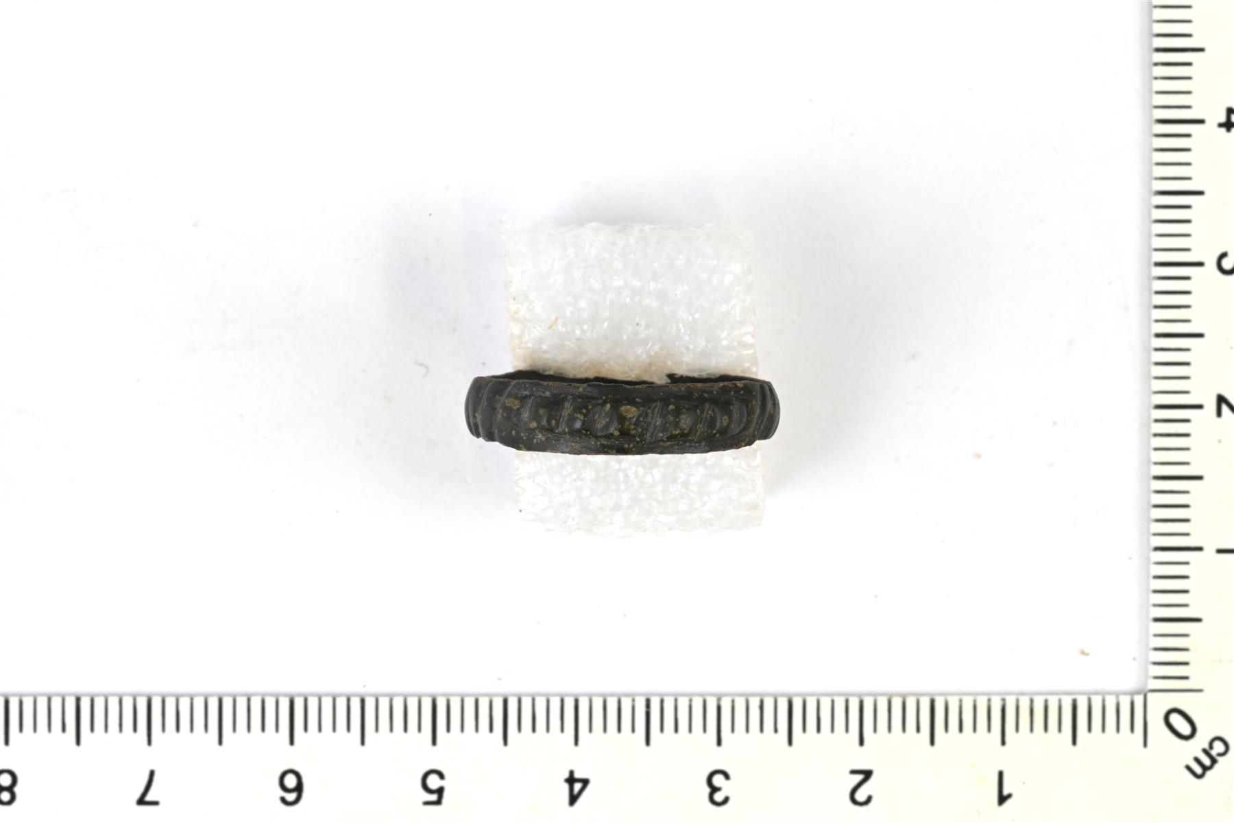 | Tasaleveä umpisormus. Etuosassa on kohokuvioitua koristelua. | |