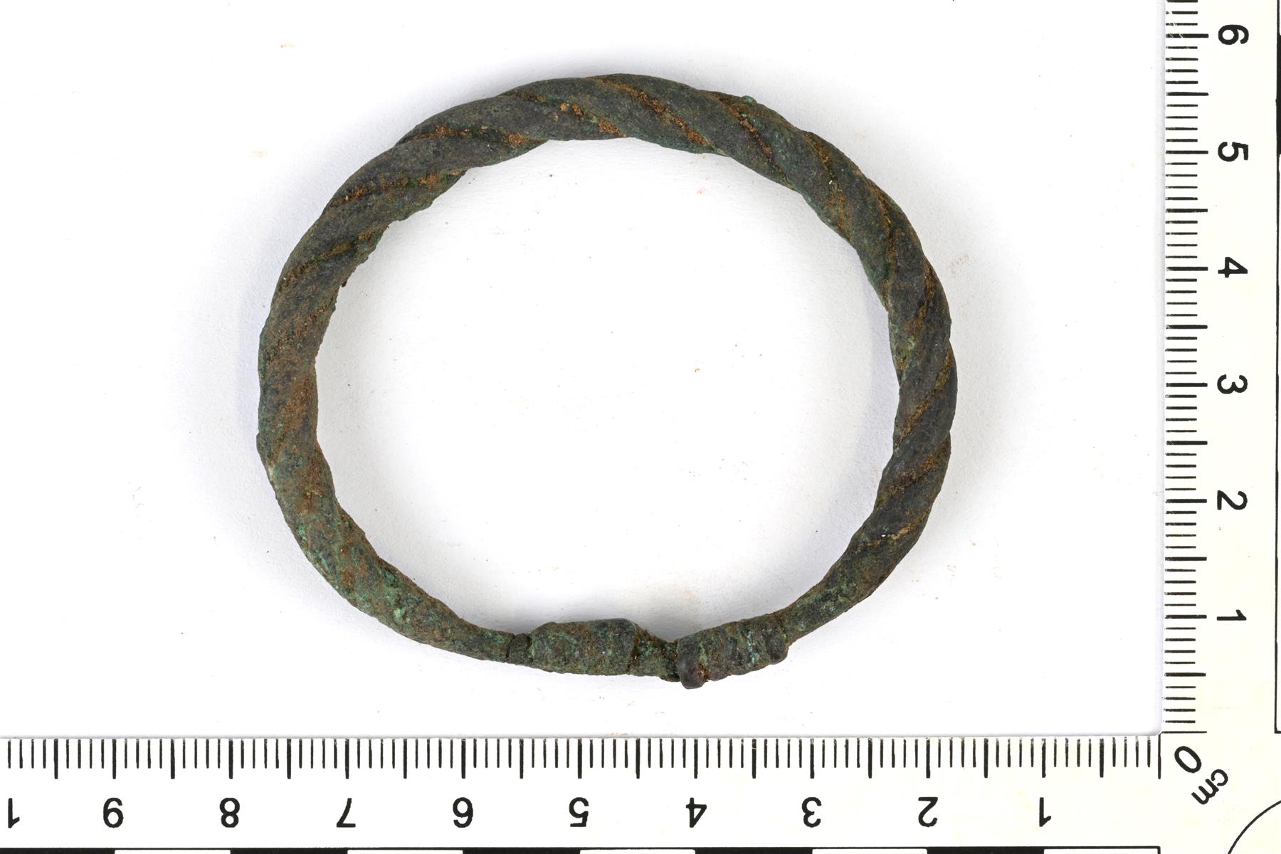 | Kierrekoristeinen rannerengas. Päät kapenevat ohuiksi nauhoiksi, jotka on kierretty vastapään ympärille. Vrt. Kivikoski Abb. 746. | |
