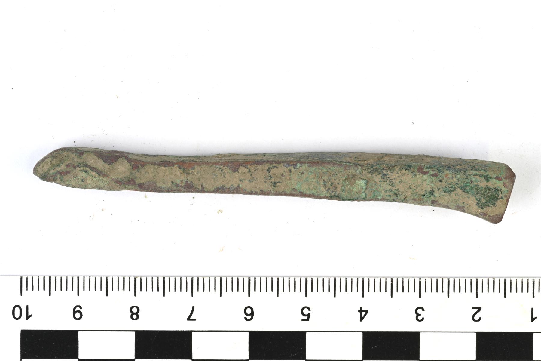 | Mahdollinen raaka-ainevartaan katkelma. Toisessa päässä on katkaisujälki. | |