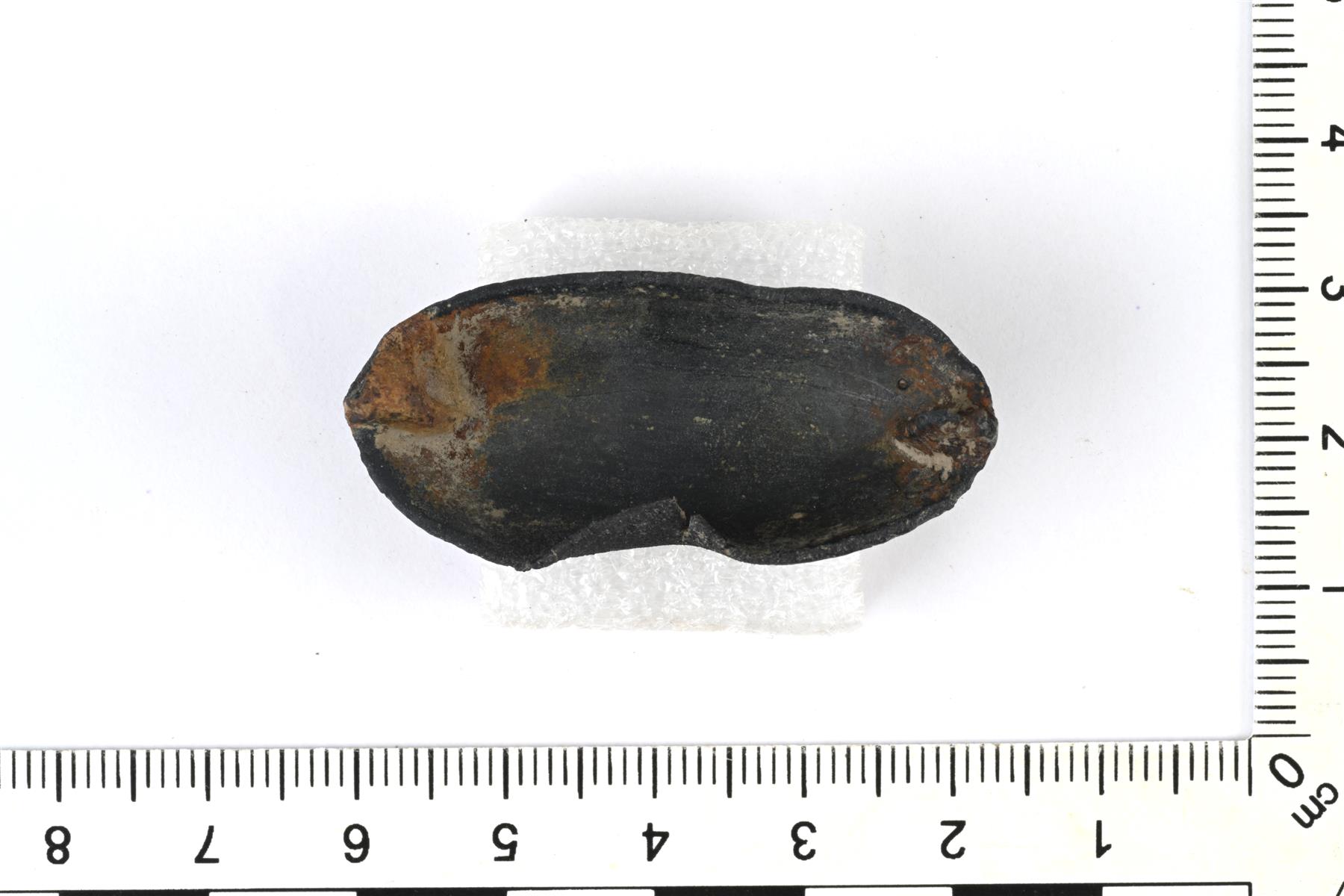 | Ovaali vendelaikainen kupurasolki. Etupuoli on koristeeton. Taustapuolella on neulakota ja neulan kiinnityslenkin jäänne. | |