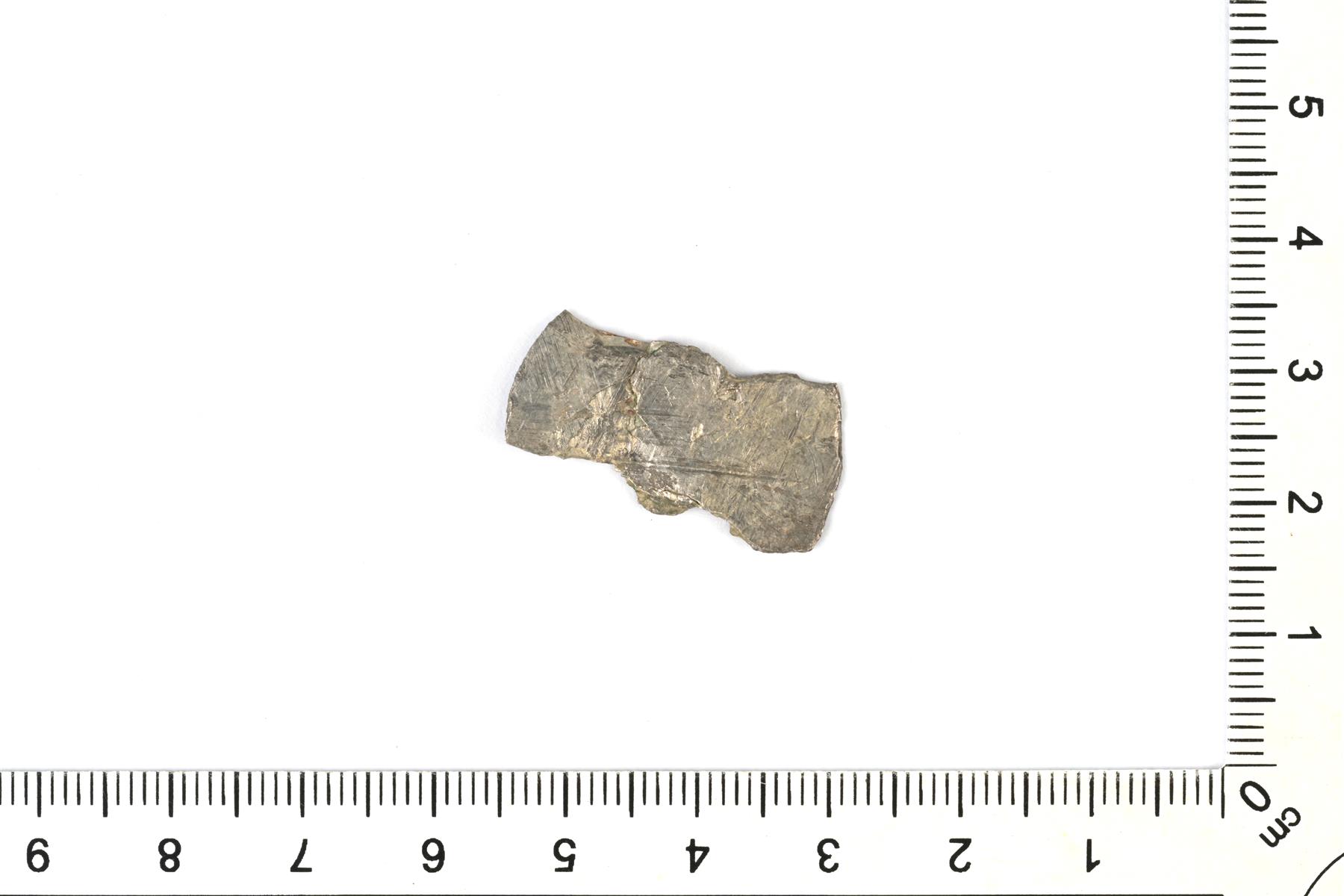 | Isohkon ohuen hopearahan katkelma, täysin kulunut. Ei leimaa, naarmuinen. Mahdollisesti huonokuntoinen dirhemi. | |