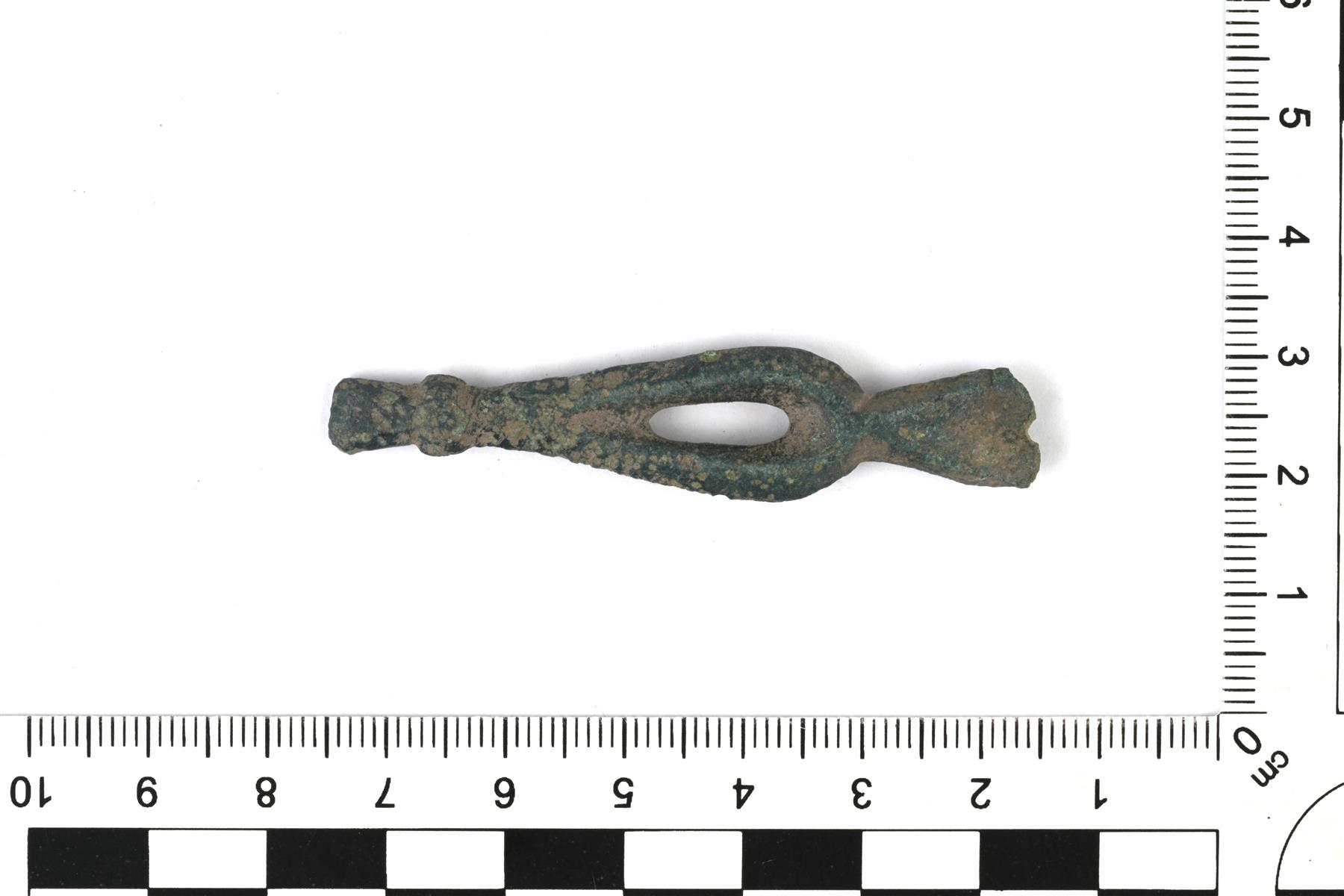 | Vyön tai hihnan päätehela. Yläosa on hajonnut. Vrt. Kivikoski Abb. 899. | |