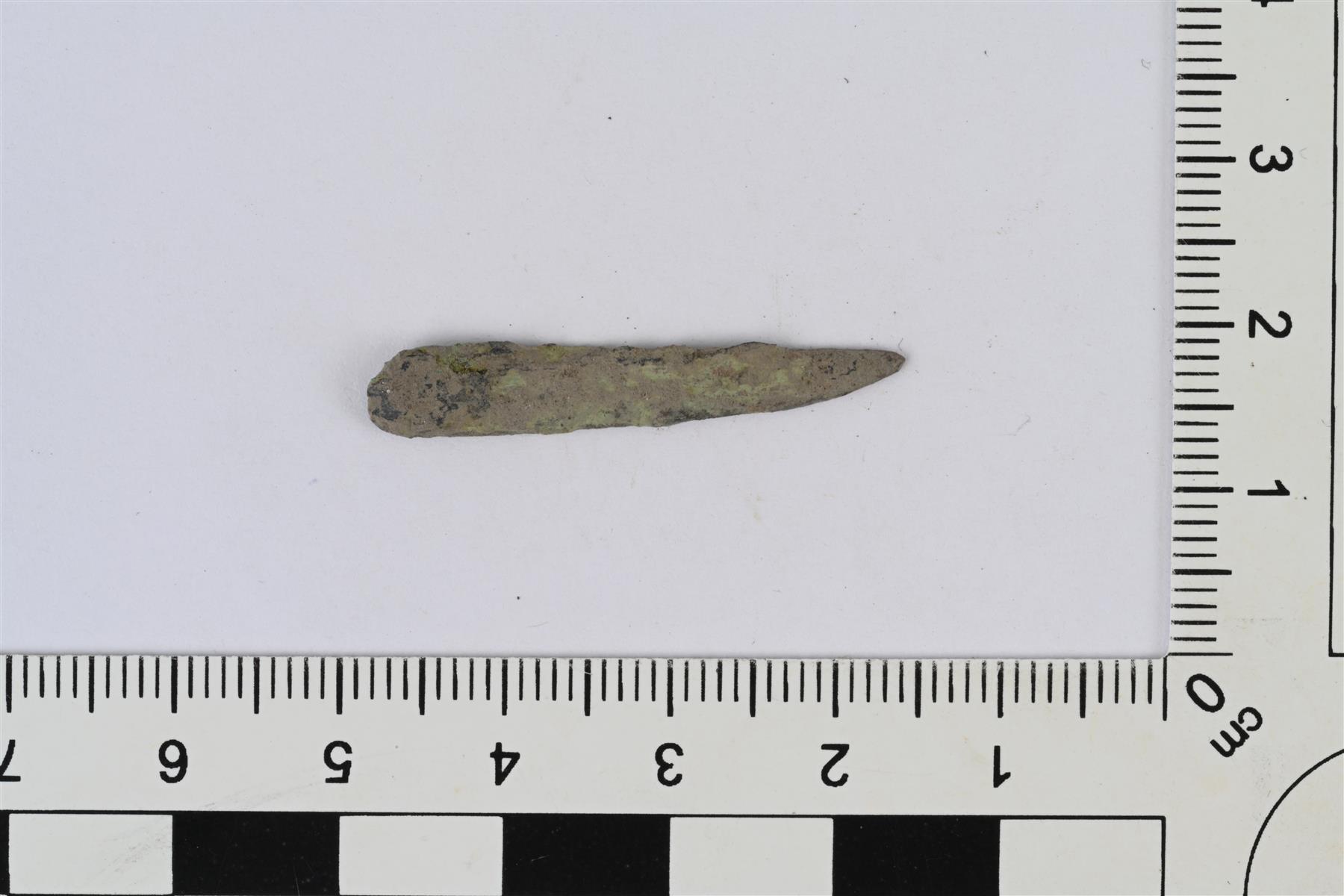 | Litteä esine tai katkelma. Pitkänomainen, toinen pää suippo. | |
