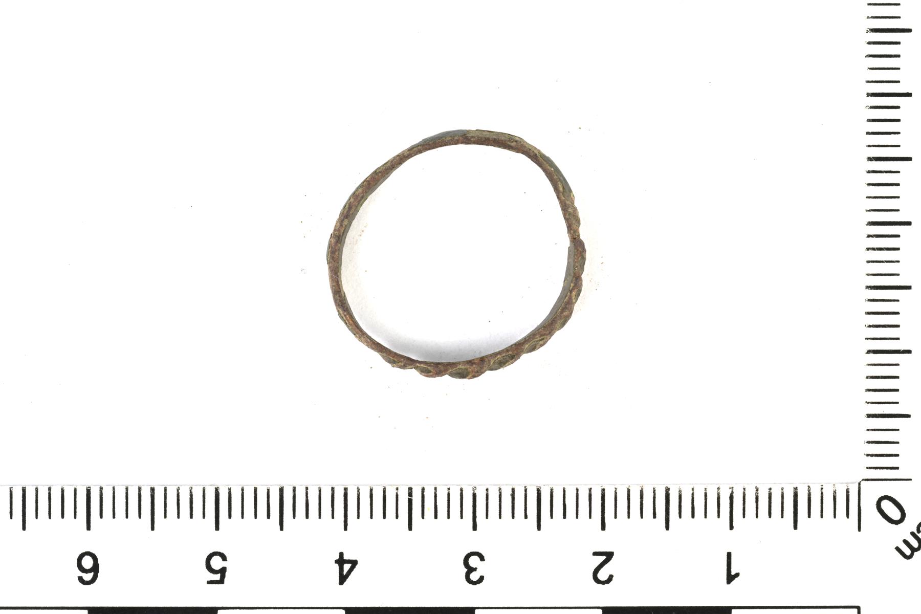 | Tasaleveä umpisormus. Etuosassa on koristeluna vinoviivakuviointia. | |