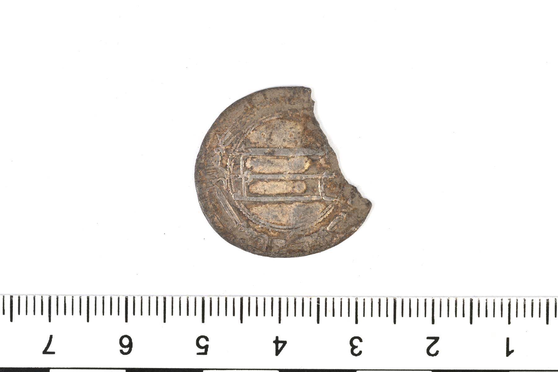 | Abbasidien dirhemin 3/4 katkelma. Madinat al-Salam, 187 AH. | |