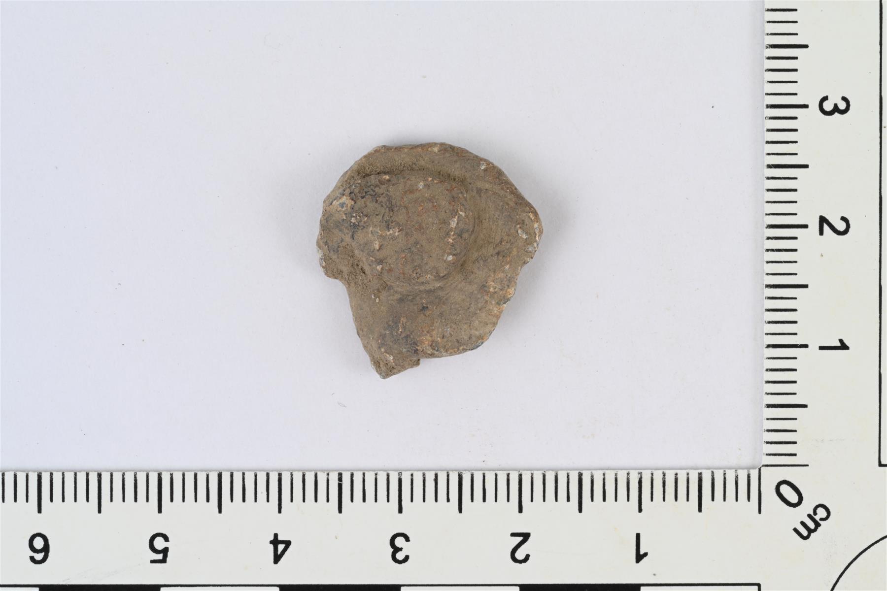 | Katkelmallinen plombi. Reunat murtuneet. Kuvioita ei erotu. | |