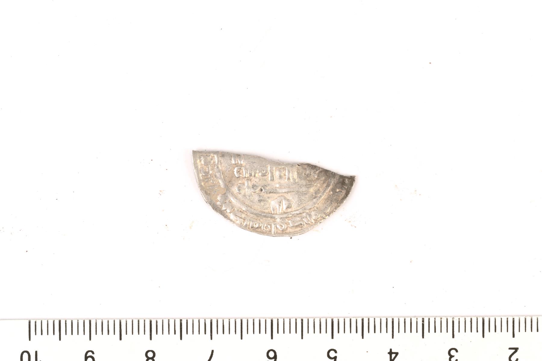 | Puolikas dirhemi. Samanidit. Lyhyt vuosiluku 300? Lyöntipaikka Samarqand. | |