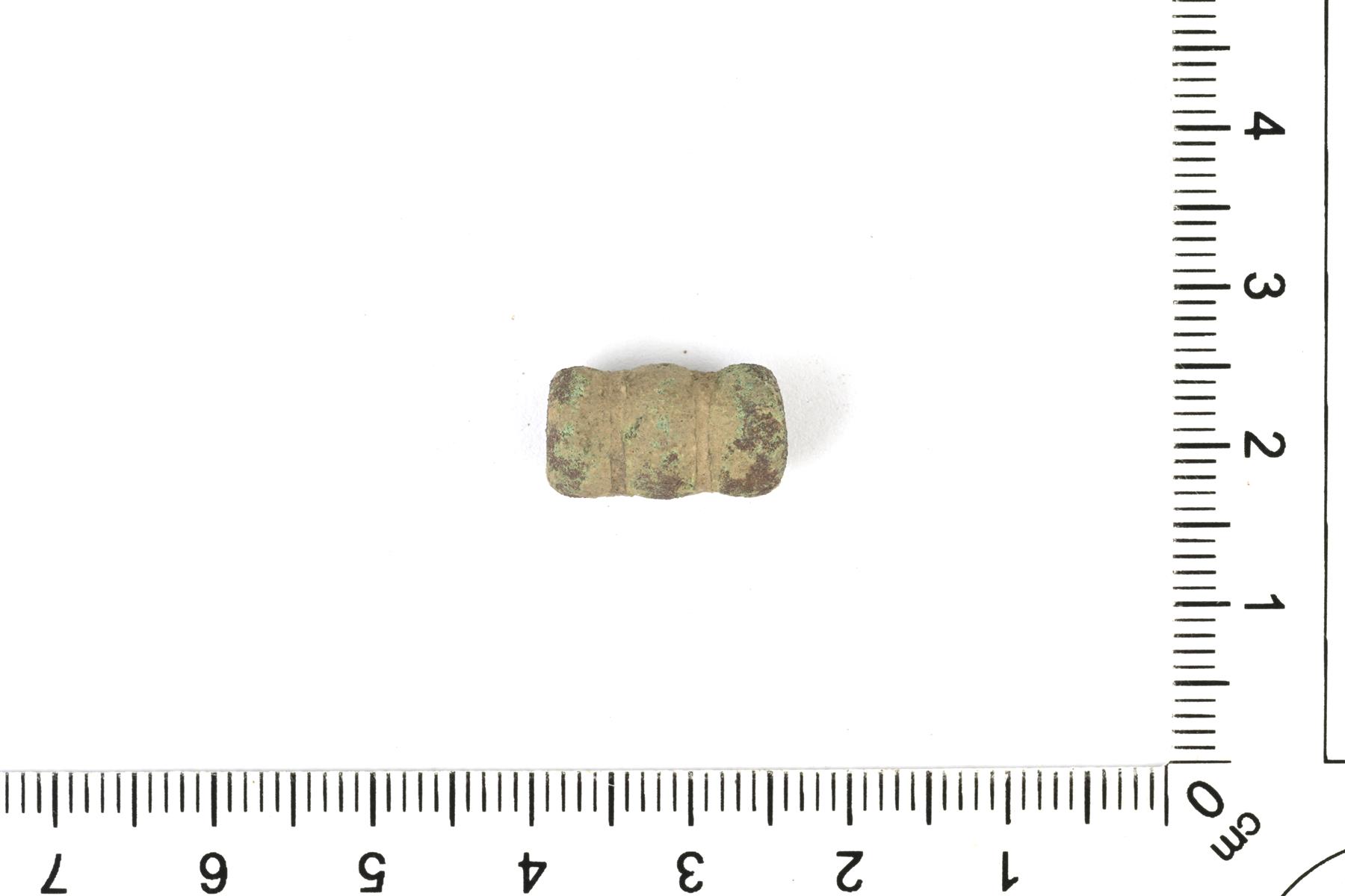 | Kolmelohkoinen sarjahelmi. Pahoin kulunut. | |