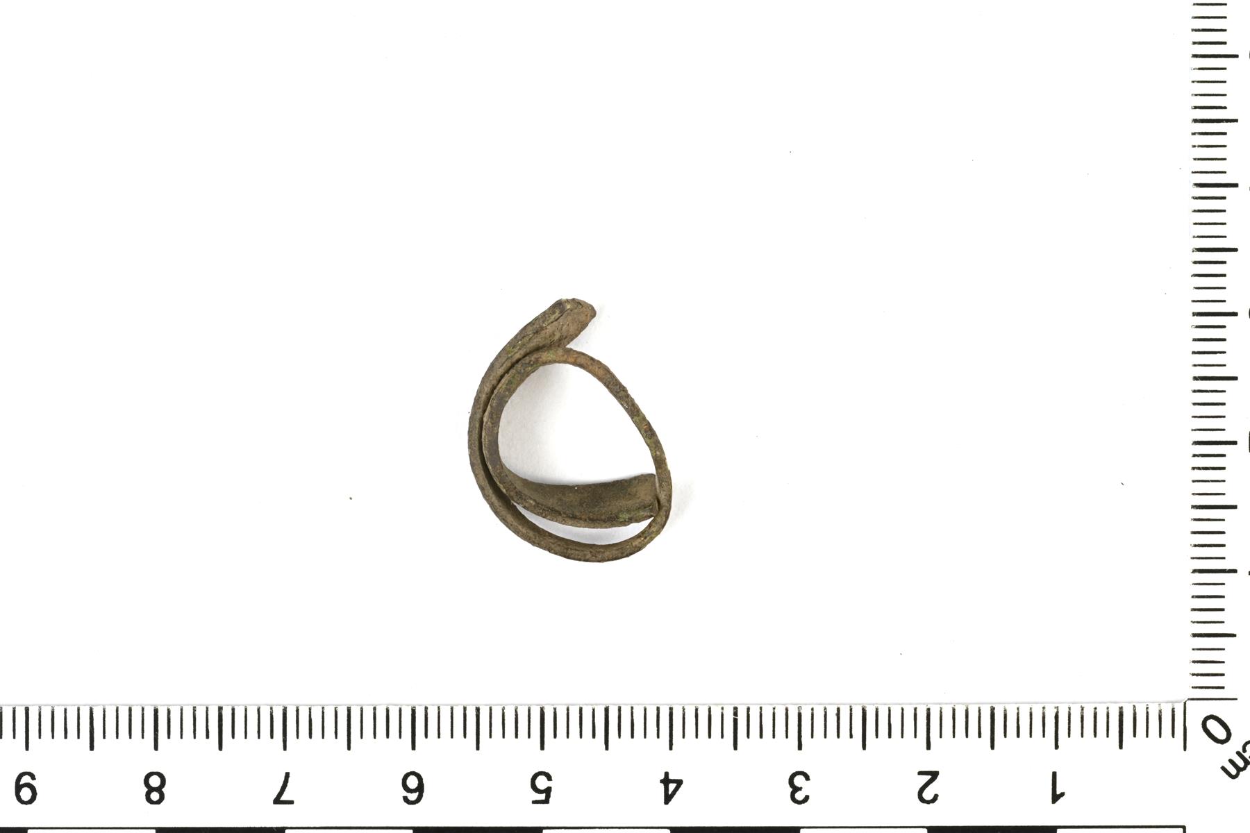 | Päihin levenevä kupariseosvarras. Mahdollisesti sormus. | |