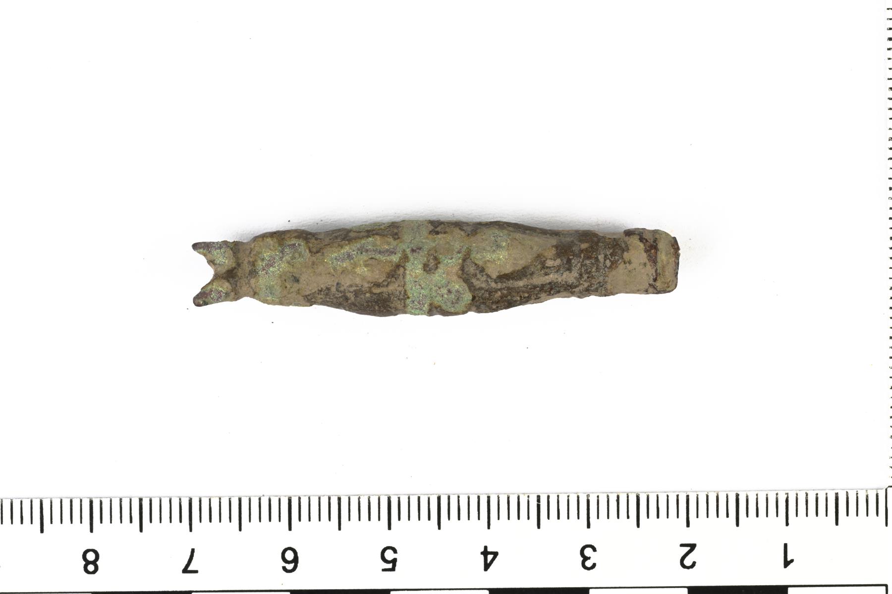 | Skandinaavisen koruneulan nuppi. Hyvin kulunut. Vrt. Arbman Taf. 171: 6. | |