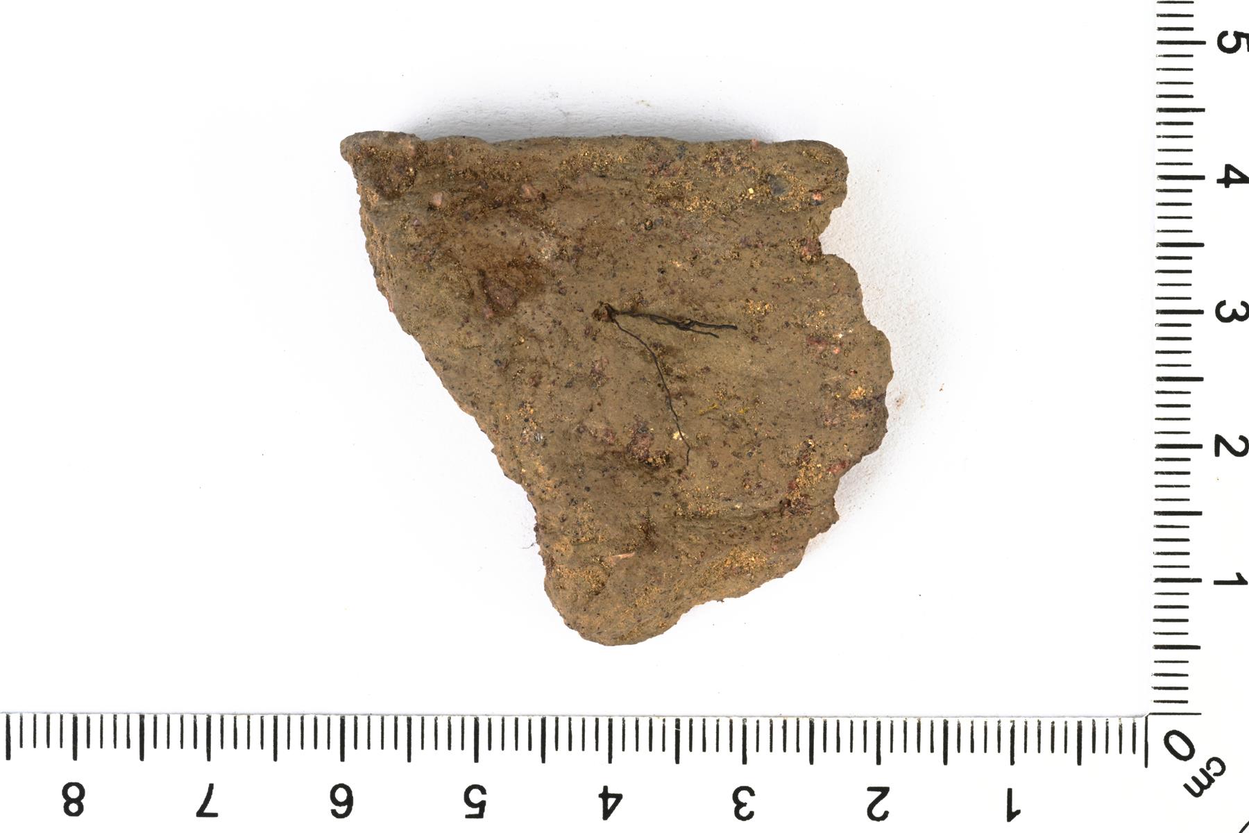 | Saviastian reunapala. Ulkopinta on hajonnut. Reunan yläosa on suora ja siinä erottuu hentoja leimakuvioita. | |