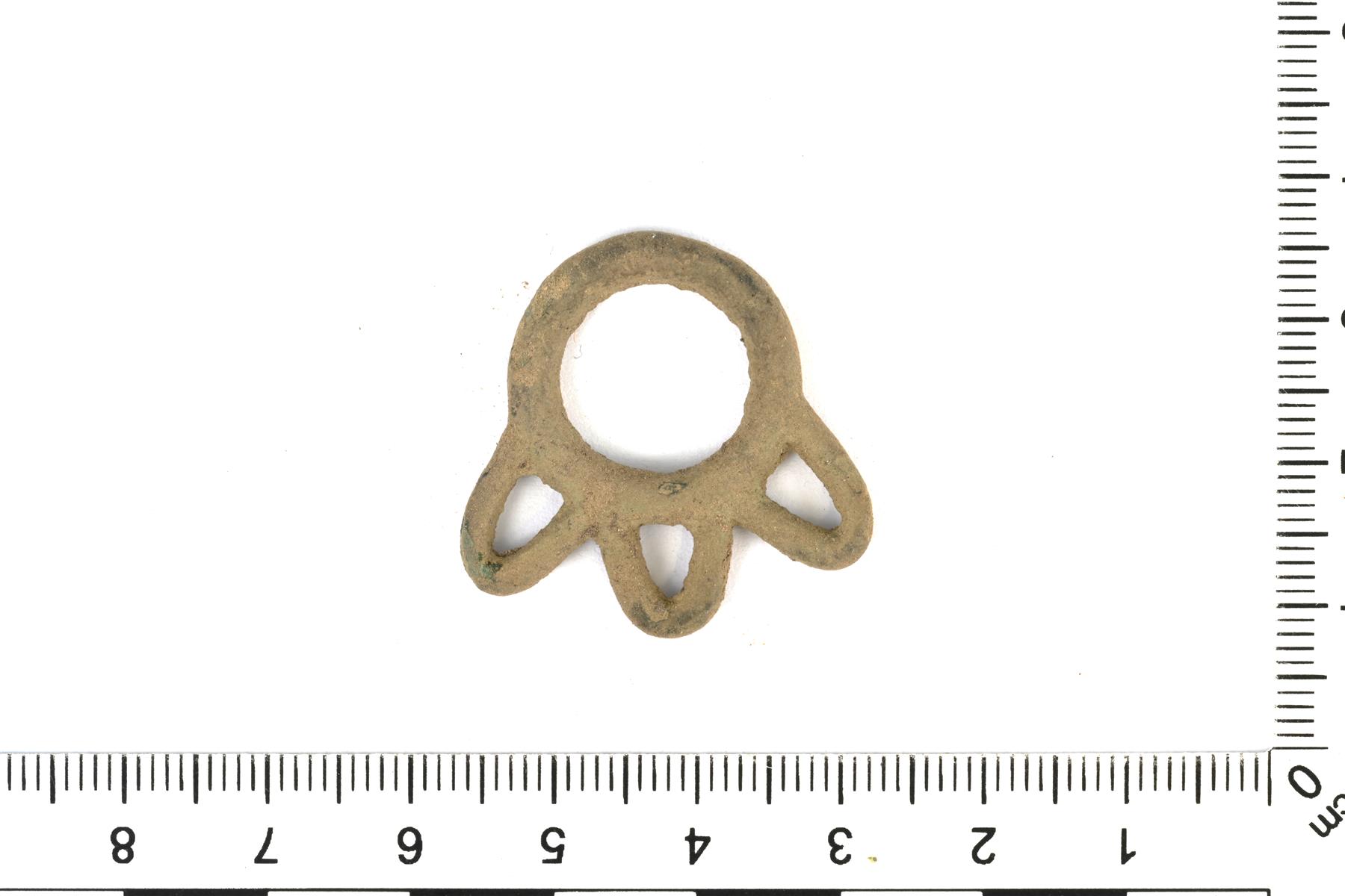 | Pyöreä hihnanjakajan rengas. Reunassa on kolme rinnakkaista lenkkiä. | |