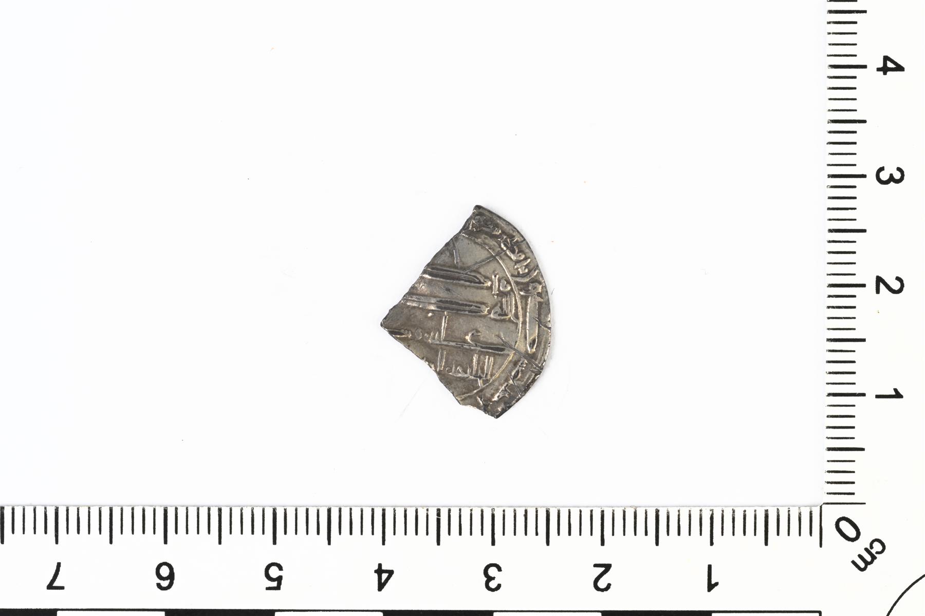 | Abbasidit, Harun al-Rašid, dirhemi, al-Muhammadiya AH 170-193 (786-809 jaa). Katkelma, n. 1/3 ja pieni muru. | |