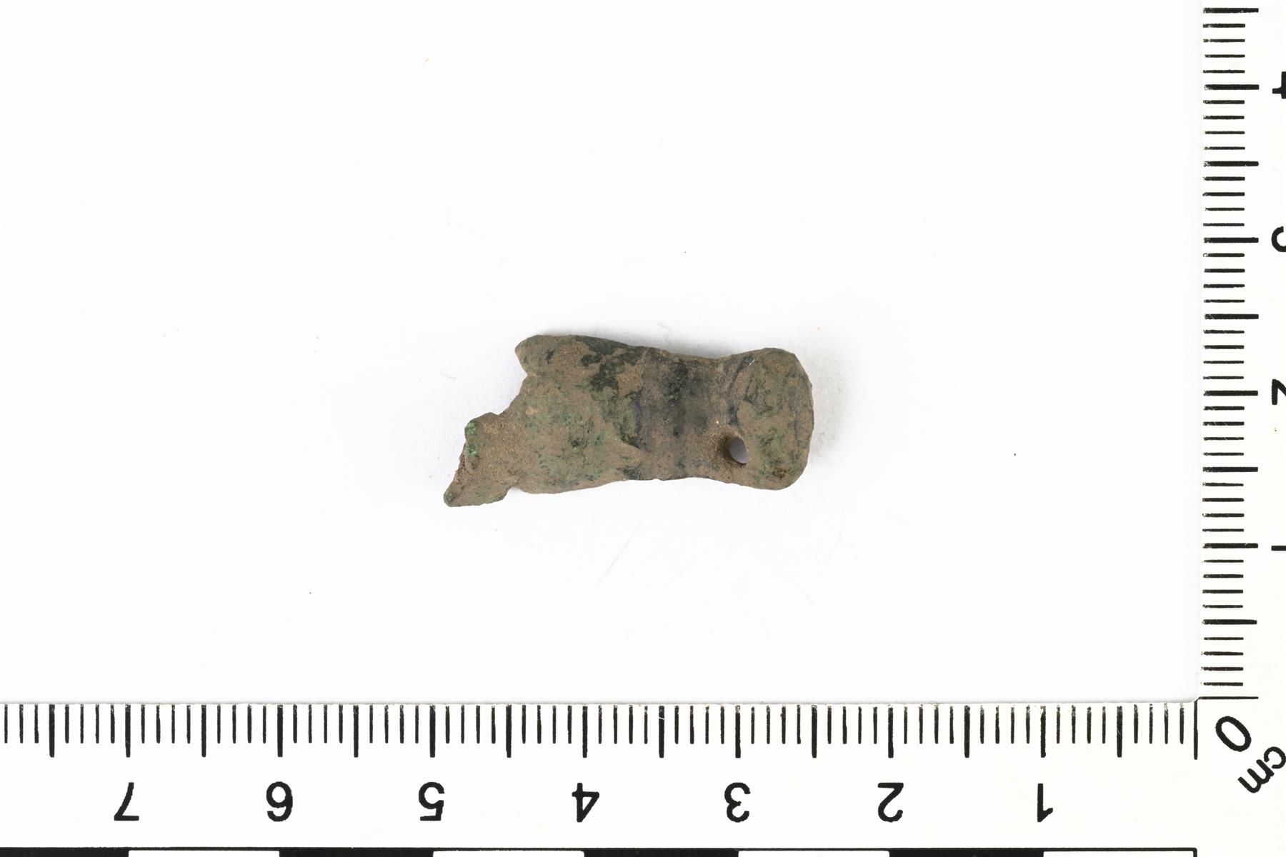 | Tasavartisen soljen puolikas. Päädyn sivussa on reikä ketjun kiinnitystä varten. | |