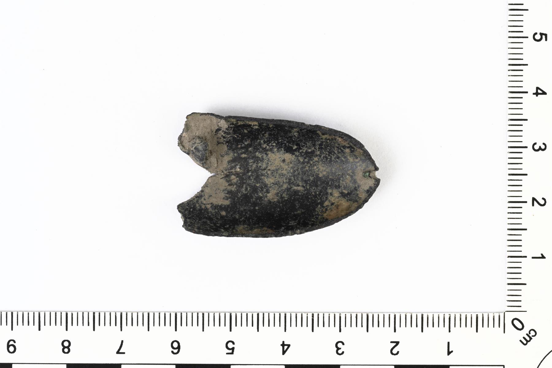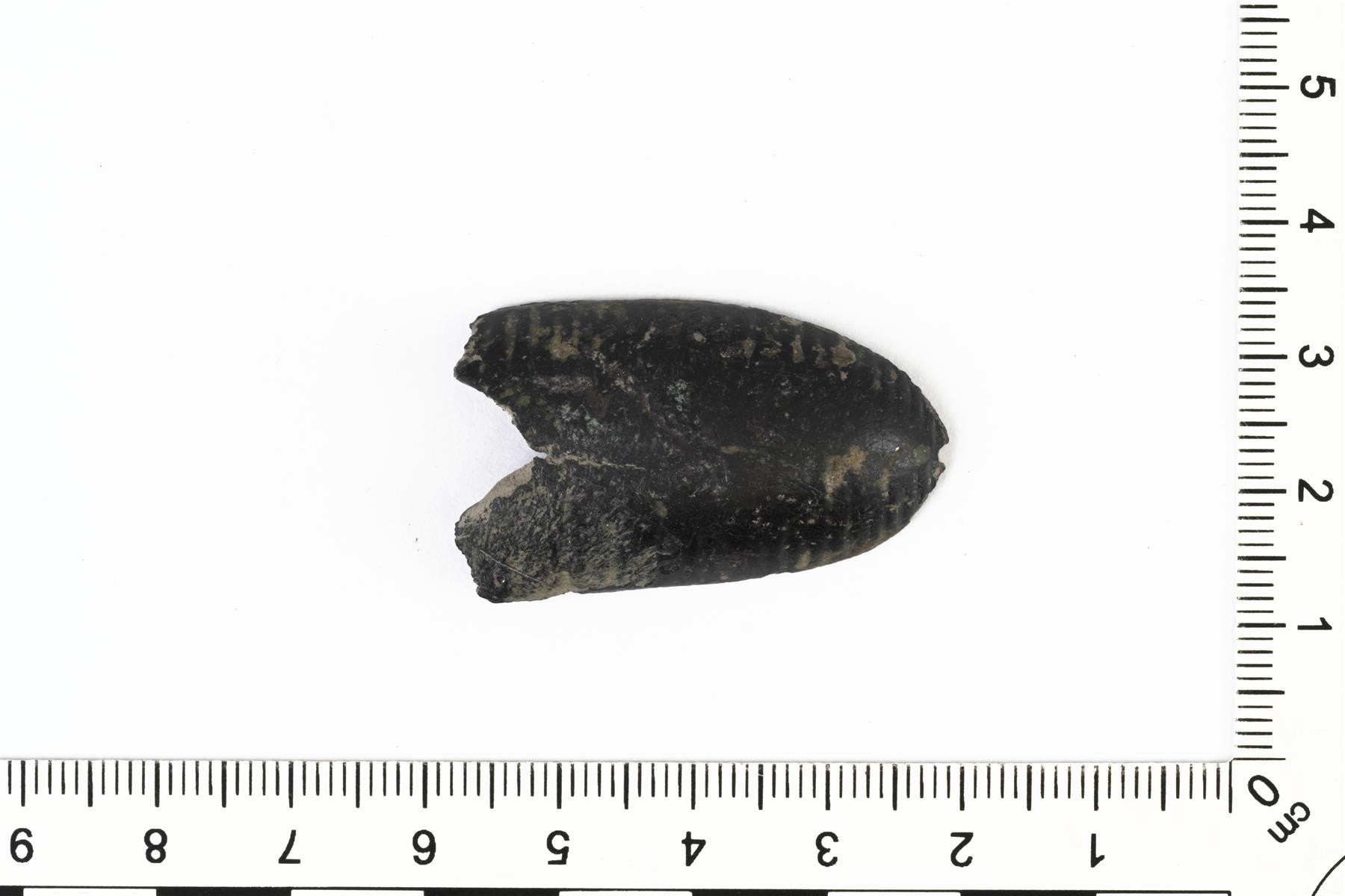 | Pienikokoisen soikean kupurasoljen puolikas. Etupuolella on poikittaisten viivauurteiden muodostama koristekenttä. Vrt. Kivikoski Abb. 435. Ks. myös Rundqvist 2015. | |