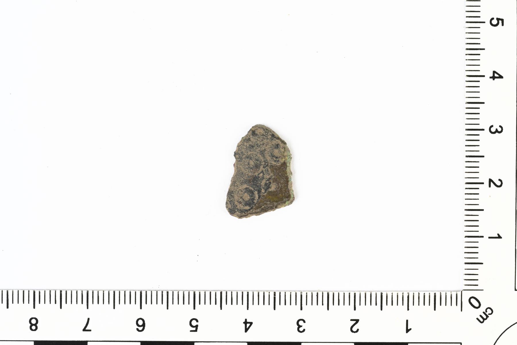 | Häränsilmäleimoilla koristeltu mahdollisen riipuksen katkelma. | |