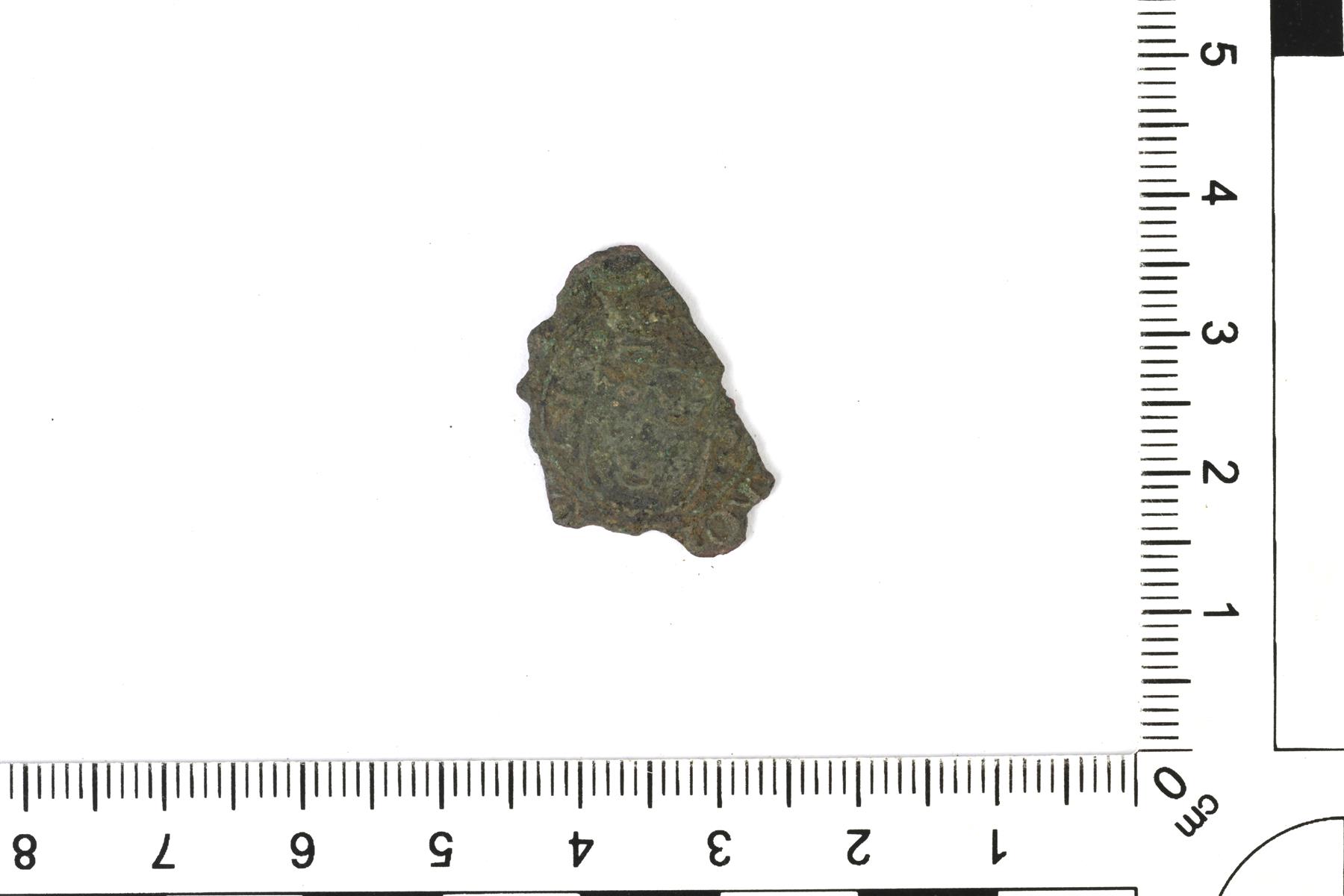 | Hopearahan katkelma. Todennäköisesti Juhana III, 2 äyriä, 1573. | |