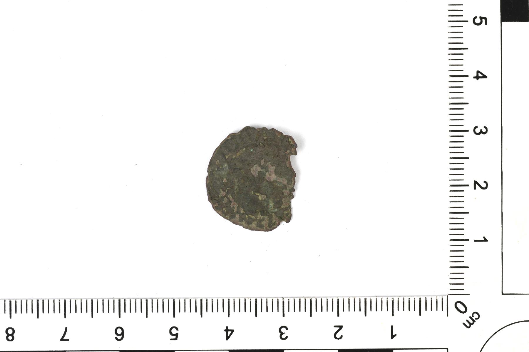 | Hopearahan katkelma. Todennäköisesti Juhana III, 1/2 äyriä. | |