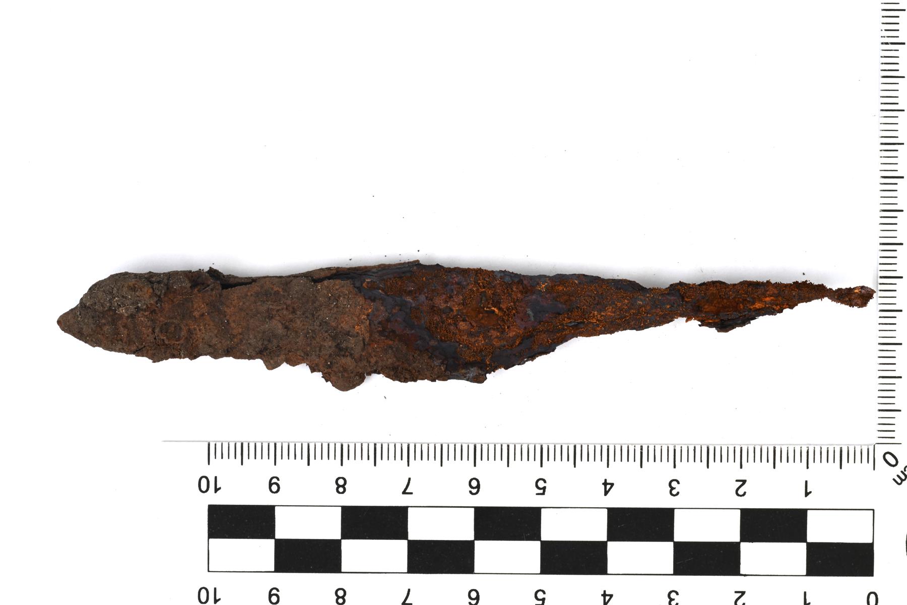 | Kaarevahamarainen ruotoveitsi. Pahoin ruostunut. | |